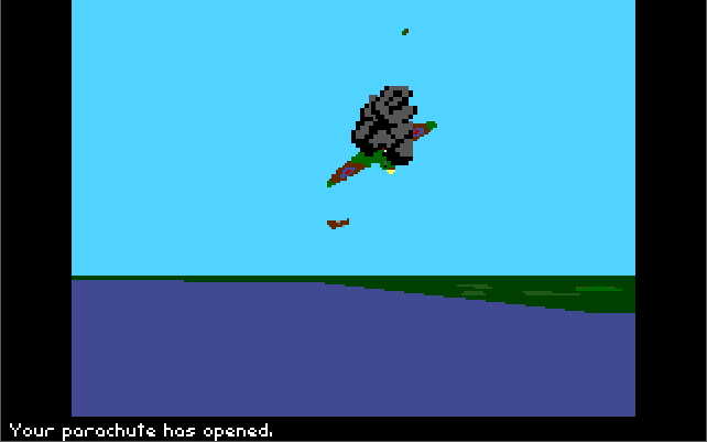It goes without saying you should play the game in VGA/MCGA or EGA mode all of which provide 320 x 200 in 16 colours. By default, BOB will look for an Ad Lib-compatible sound card and try and send all its music and sounds to that, so you really don't need to do anything to get the most out of this. An analogue joystick is really essential to get the most out of flying, and a mouse is convenient for navigating around the menus.