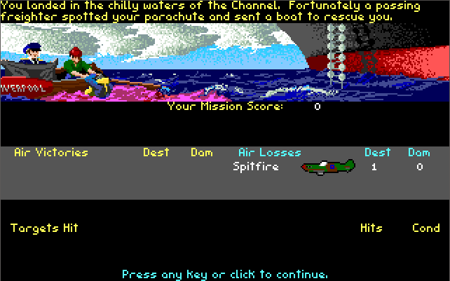 The special Campaign Mode allows one to actually change the historical outcome of the Battle of Britain. On a strategic map, you organize your planes into groups and assign them to missions, one of which must be flown by you. The outcome of your assignments and the missions you personally fly affect those of all others and also the status of the overall campaign. The British side wins by simply surviving for a certain time or by destroying enough German aircraft. The German side wins by destroying enough RAF fighters, either in the air or on the ground.