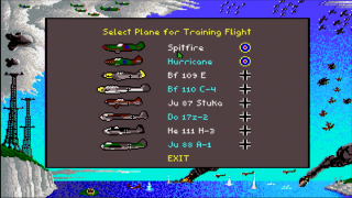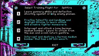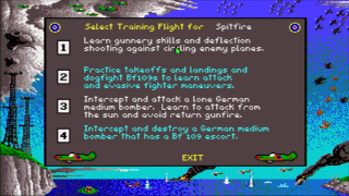 Besides training missions for every plane, there are several historical combat missions to be flown. In accordance with history, most RAF missions consist of defence assignments - intercepting and destroying German bombers. Most Luftwaffe missions are attack runs - either flying the bomber escort or the bombers themselves. In the heavier planes, not only can the pilot of the plane be controlled, but also the gunner(s), and, in the bombers, the bombardier.