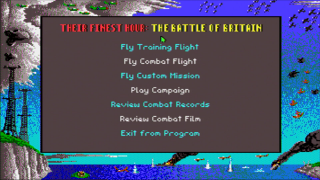 Their Finest Hour: The Battle of Britain is a World War II combat flight simulation game by Lawrence Holland, released in October 1989 for the Amiga, Atari ST and MS-DOS systems. It was the second game in the trilogy of World War II titles by Lucasfilm Games, the others being Battlehawks 1942 (1988) and Secret Weapons of the Luftwaffe (1991). The game was released with a 192-page manual written by Victor Cross, that provided a detailed historical overview of the battle and pilots' perspectives. An expansion pack, Their Finest Missions: Volume One, was released later in the year.