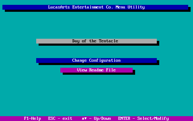 Hit 'Y' and you can then choose to either run the game with those settings, change the configuration again, or view the readme file (they grey background one is the current one highlighted):