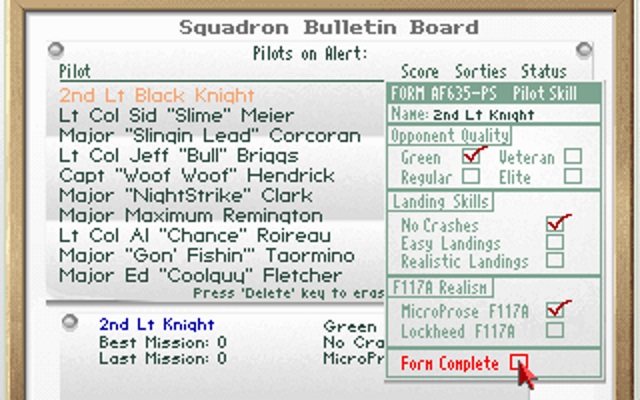If you are coming from playing F-19, the game's controls are almost identical, bar a few changes that are specific to the F-117A, so you will be flying like a pro in no time.
