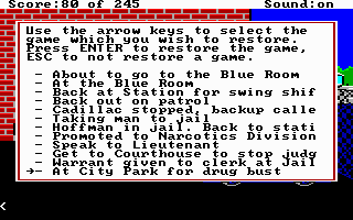 Note that it is unlikely that save game files that were created using one version of Police Quest will work with another version.