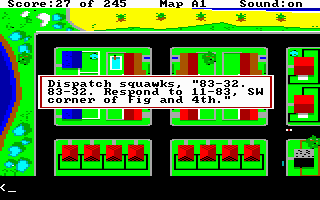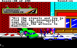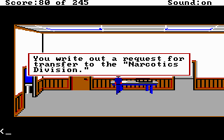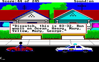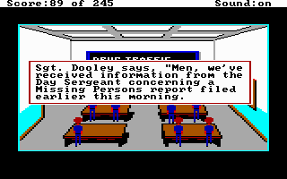 Police Quest: In Pursuit of the Death Angel does give you some guidance as you work through various scenarios, while at other times it is inevitable you will forget a critical item before going to the next scene. It rarely feels rushed, and unlike some other Sierra titles, I don't believe you can 'miss' a key interaction by not getting somewhere fast enough (or not waiting around long enough for some key character to show up), which can be a source of frustration.