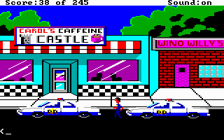 In the prior two years, we had seen Space Quest: The Sarien Encounter, King's Quest I, II and III, The Black Cauldron, Mixed-Up Mother Goose, and then around mid-87, Leisure Suit Larry was launched alongside this, the first in the Police Quest series.