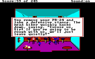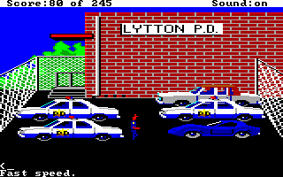 "Police Quest: In Pursuit of the Death Angel has very low system requirements, and given that early Sierra games don't run well on faster PCs, I would recommend running a decent period-correct system. I played the game through to the end on a 386DX-33 with 8 MB of memory (I know, not really period correct!), but it worked just fine without any timing glitches. You can run it on an XT or 286 too, and then just use the speed menu to adjust your walking speed to suit. Any EGA or VGA graphics card is good - the game will run at a maximum resolution of 320x200 in 16 colours. Audio is where you may find the game slightly jarring, as only PC speaker or Tandy options were available. AGIMIDI does work, but it's not great sounding, so I would get your late 80s rose-tinted glasses on and stick to PC speaker for the full effect that Sierra were going for."