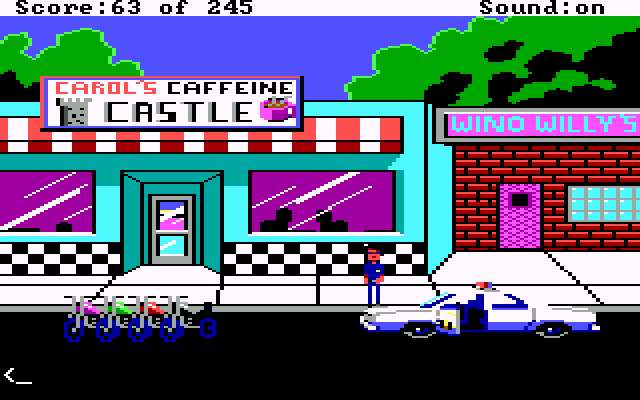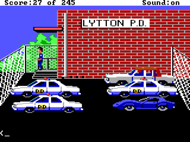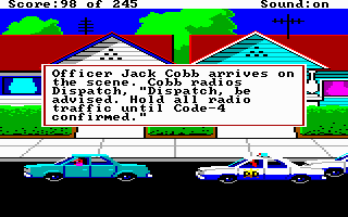 The original Police Quest game was released in 1987 and uses Sierra's Adventure Game Interpreter (AGI). In 1992, they remastered Police Quest 1 to feature 256-colour VGA graphics, better audio support and ran using the new Sierra Creative Interpreter (SCI) v1.1 with its icon/mouse-driven interface.