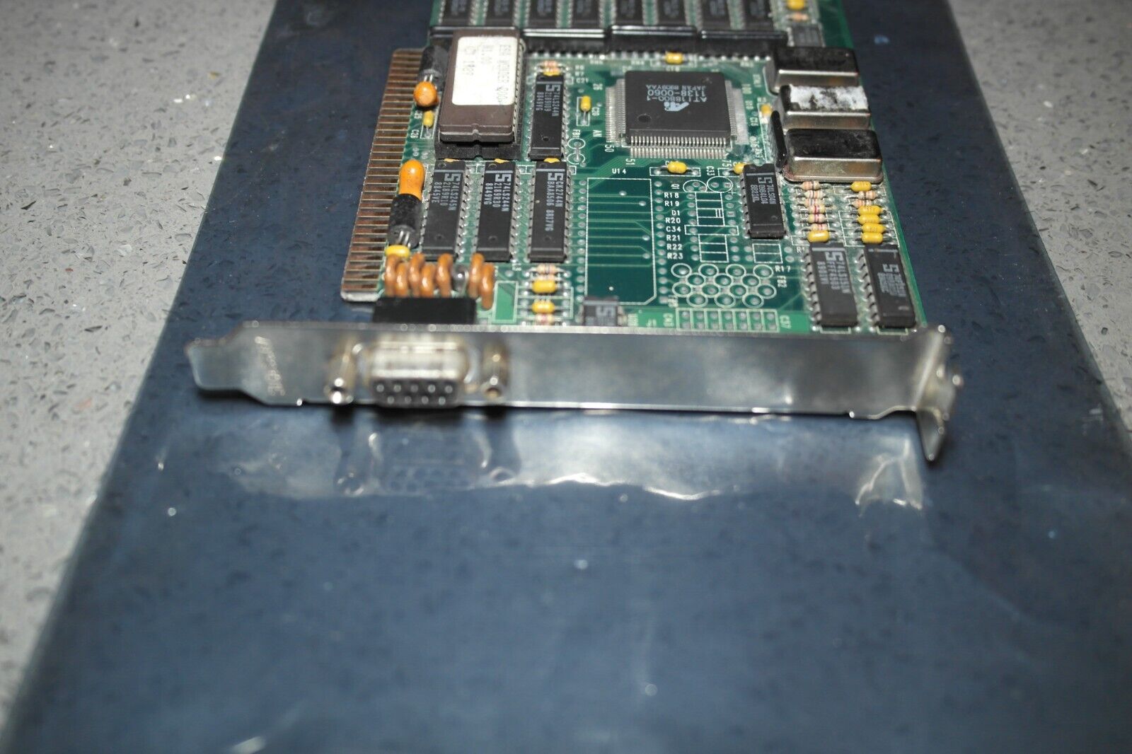 The EGA Wonder 800+ was released in 1988. It was essentially a rebadged ATi VGA Edge, but lacking the analogue VGA port and RAMDAC. The DIP switches were also removed as this card auto-detects the monitor type connected.