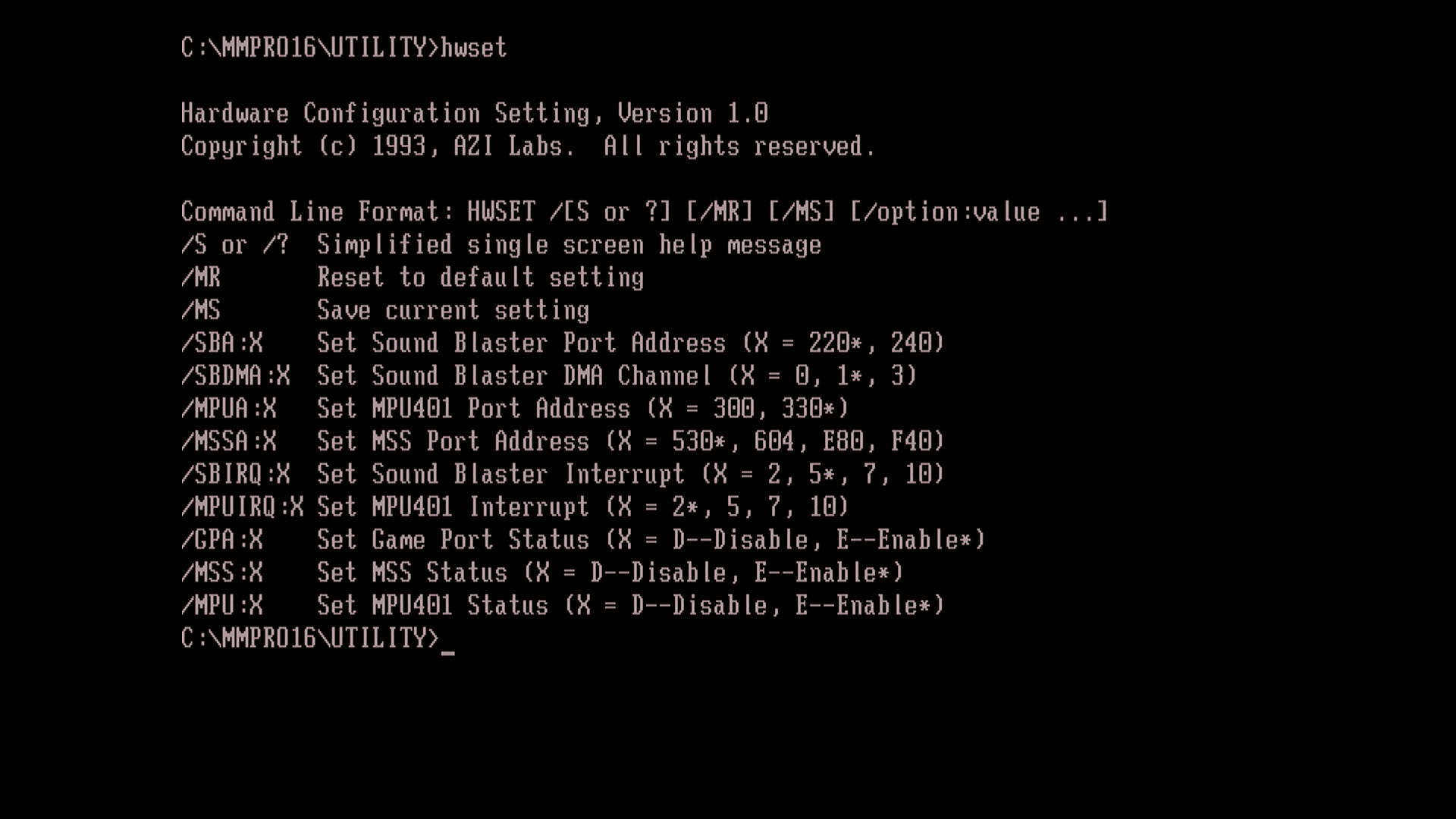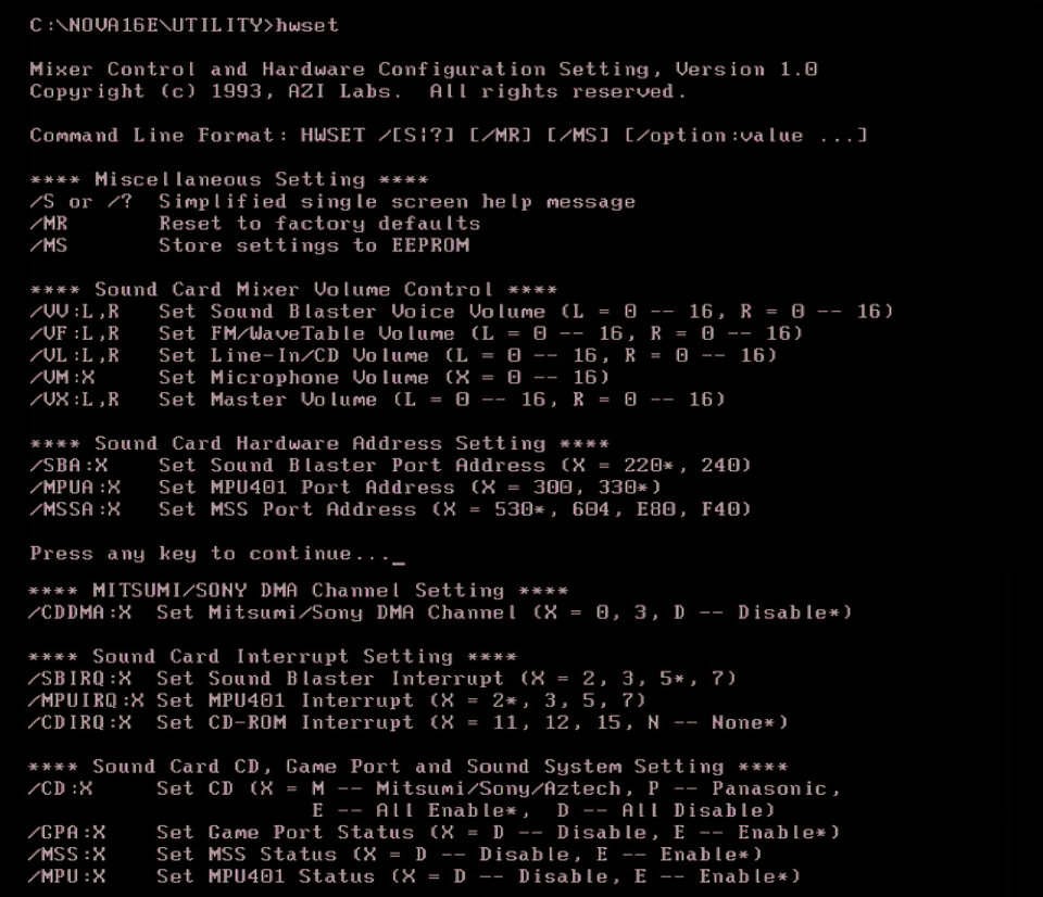 - HWSET.EXE - a command-line version of the CONFIG.EXE utility