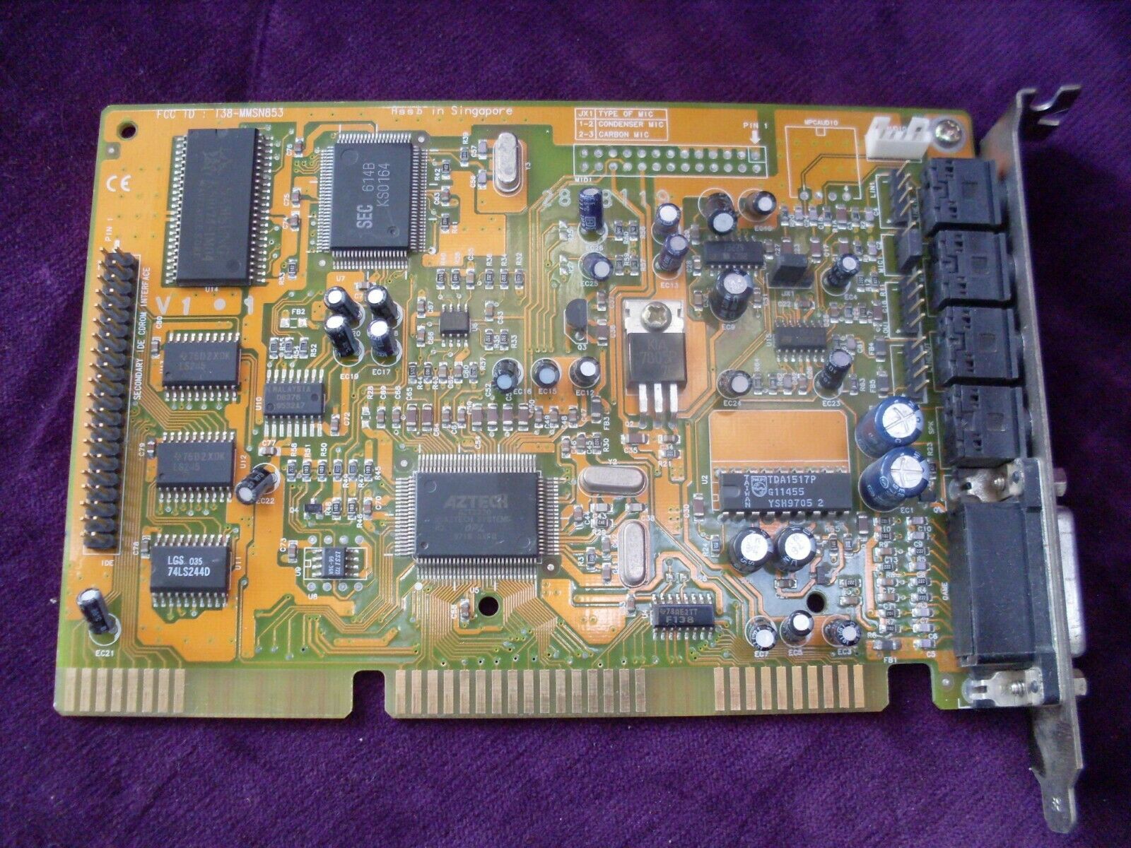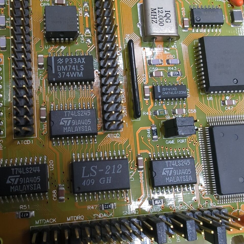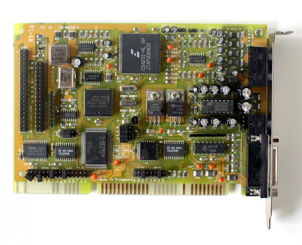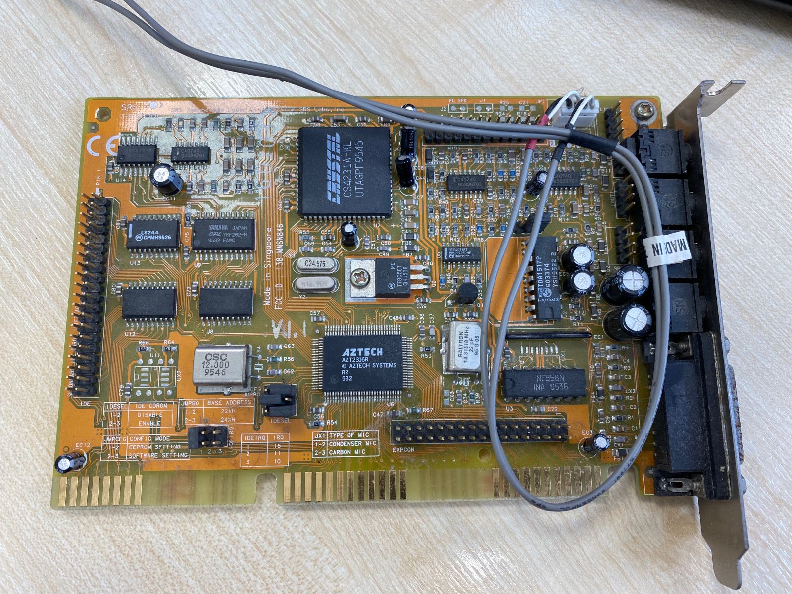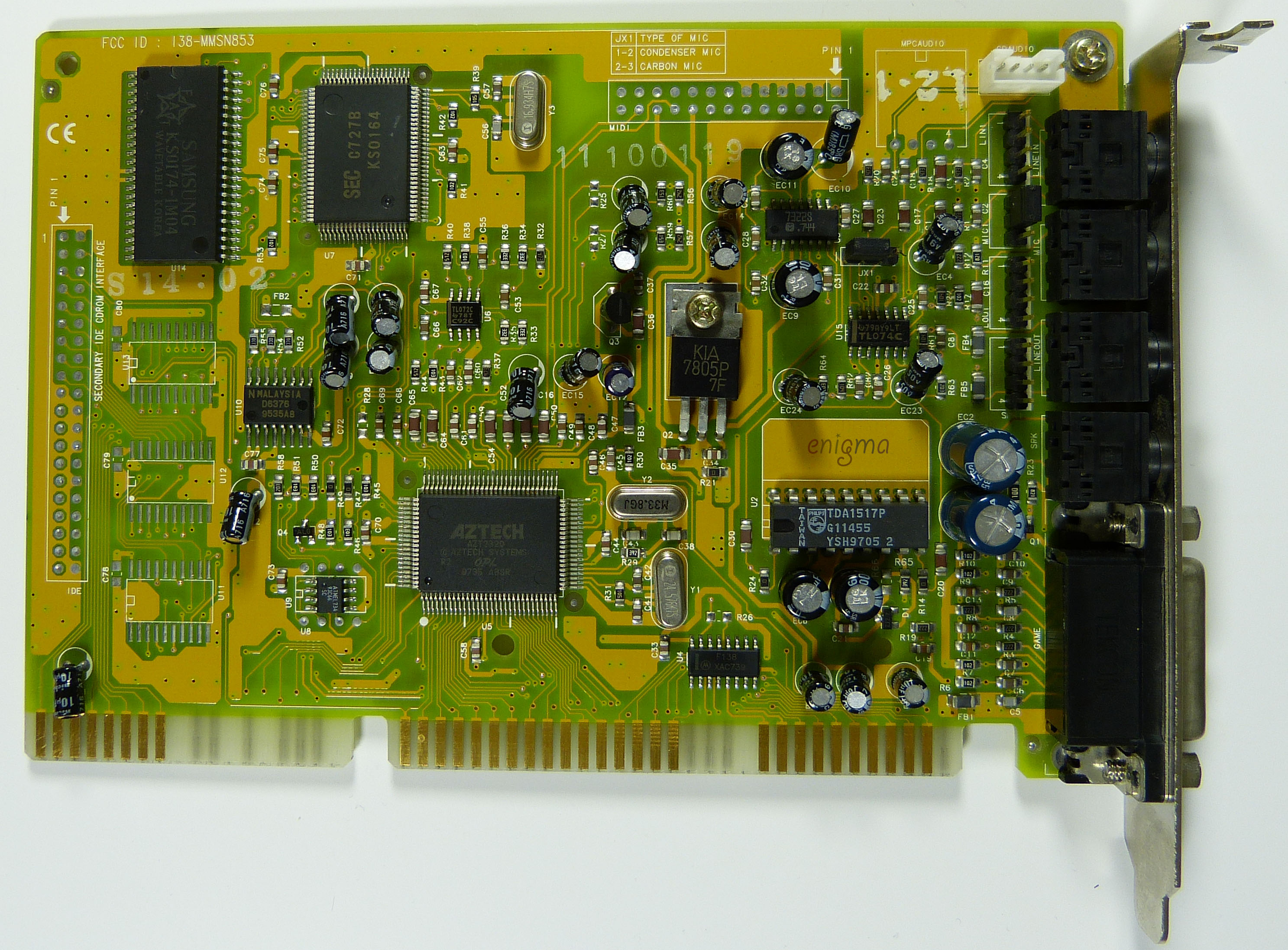 This is one of the last cards produced by Aztech that is *not* PnP. It has no wavetable header since it has embedded wavetable support in the form of the Aztech AZ3320, which is a rebranded SEC (Samsung) 0164 and a 1 MB ROM that holds the samples.