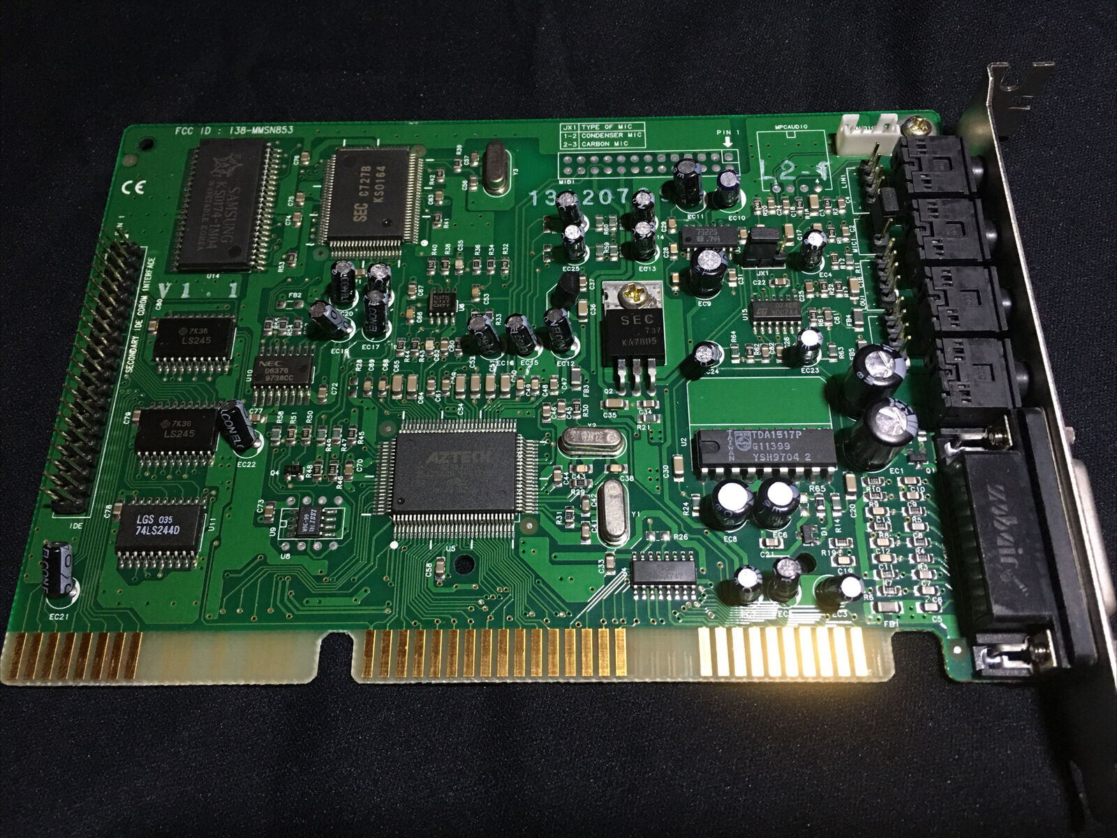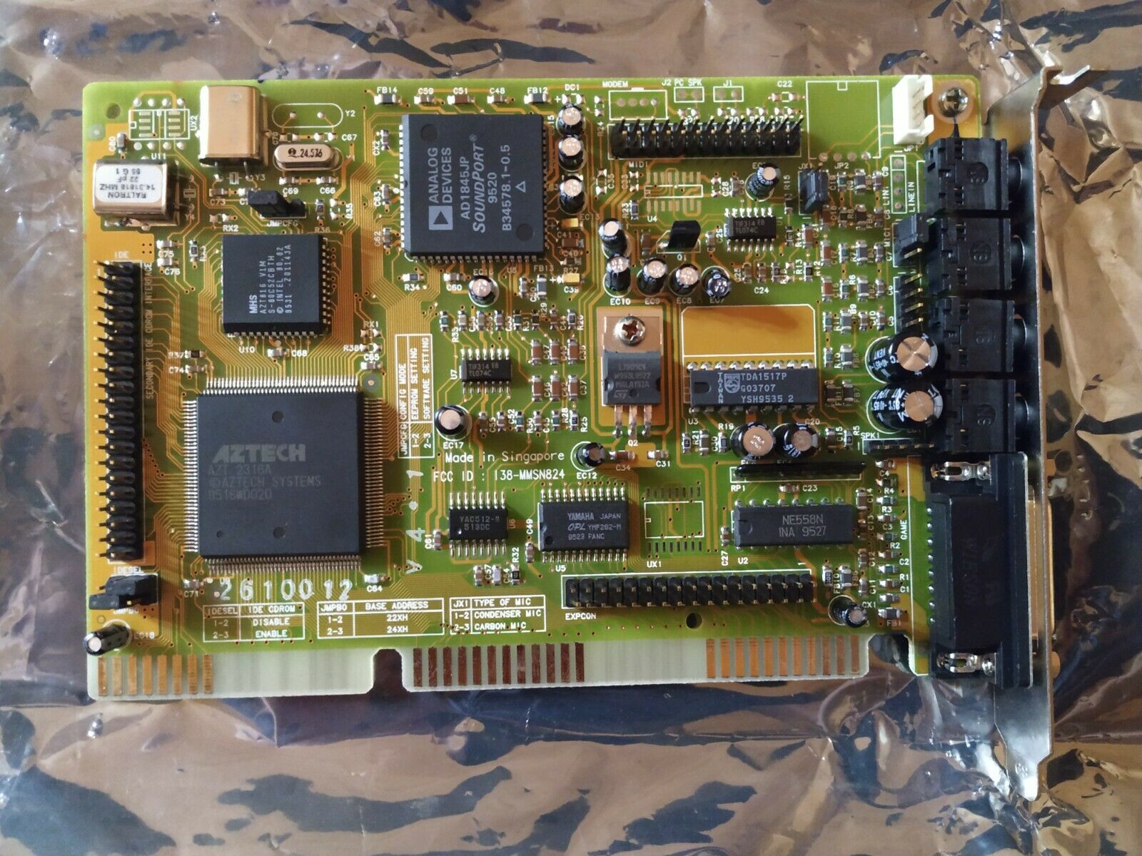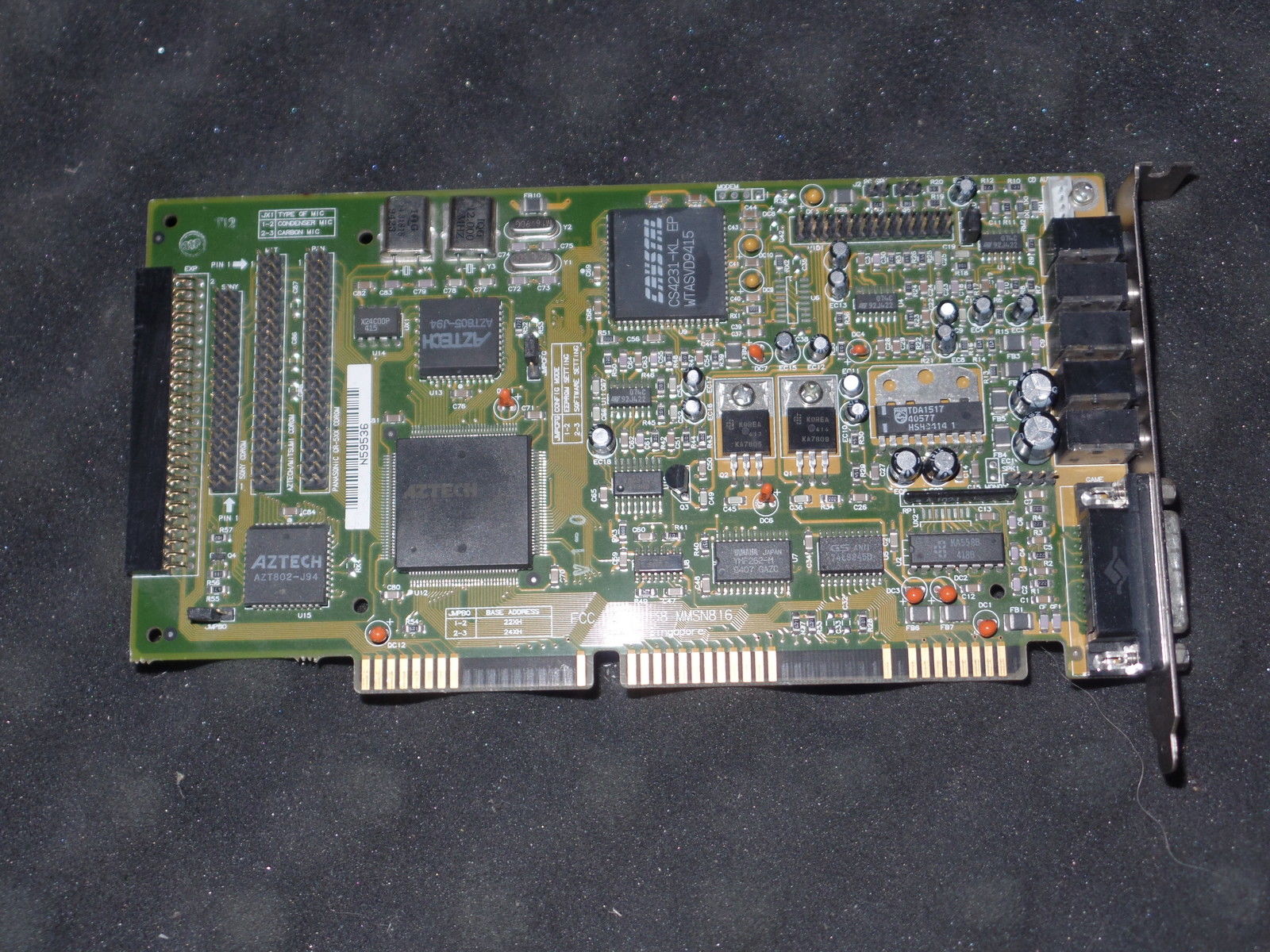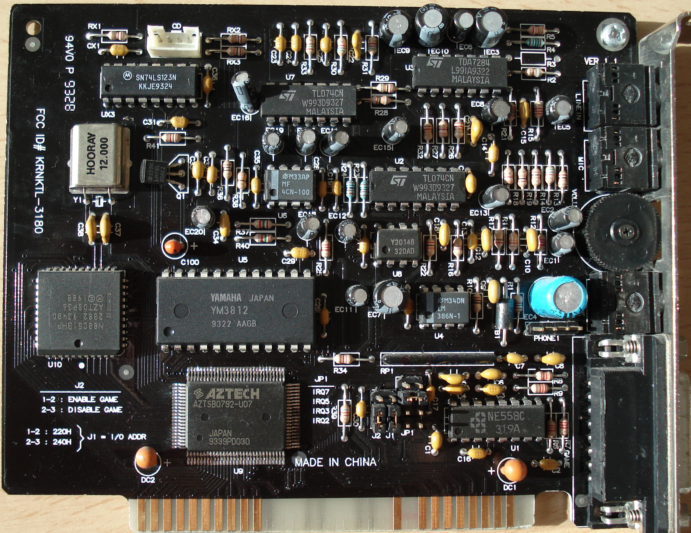 This is one of the last cards produced by Aztech that is *not* PnP. It has no wavetable header since it has embedded wavetable support in the form of the Aztech AZ3320, which is a rebranded SEC (Samsung) 0164 and a 1 MB ROM that holds the samples.