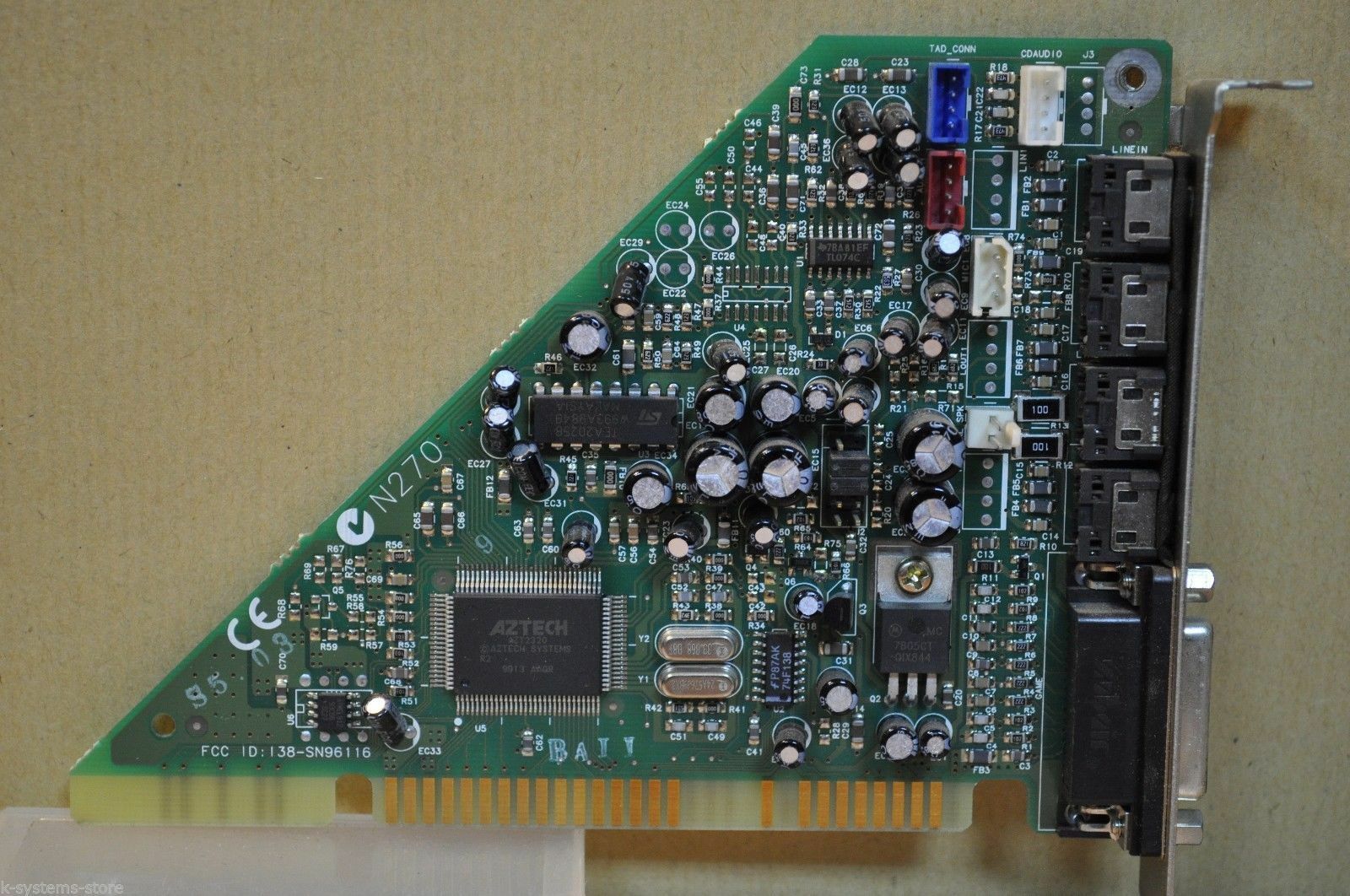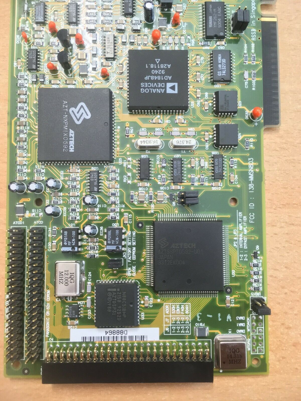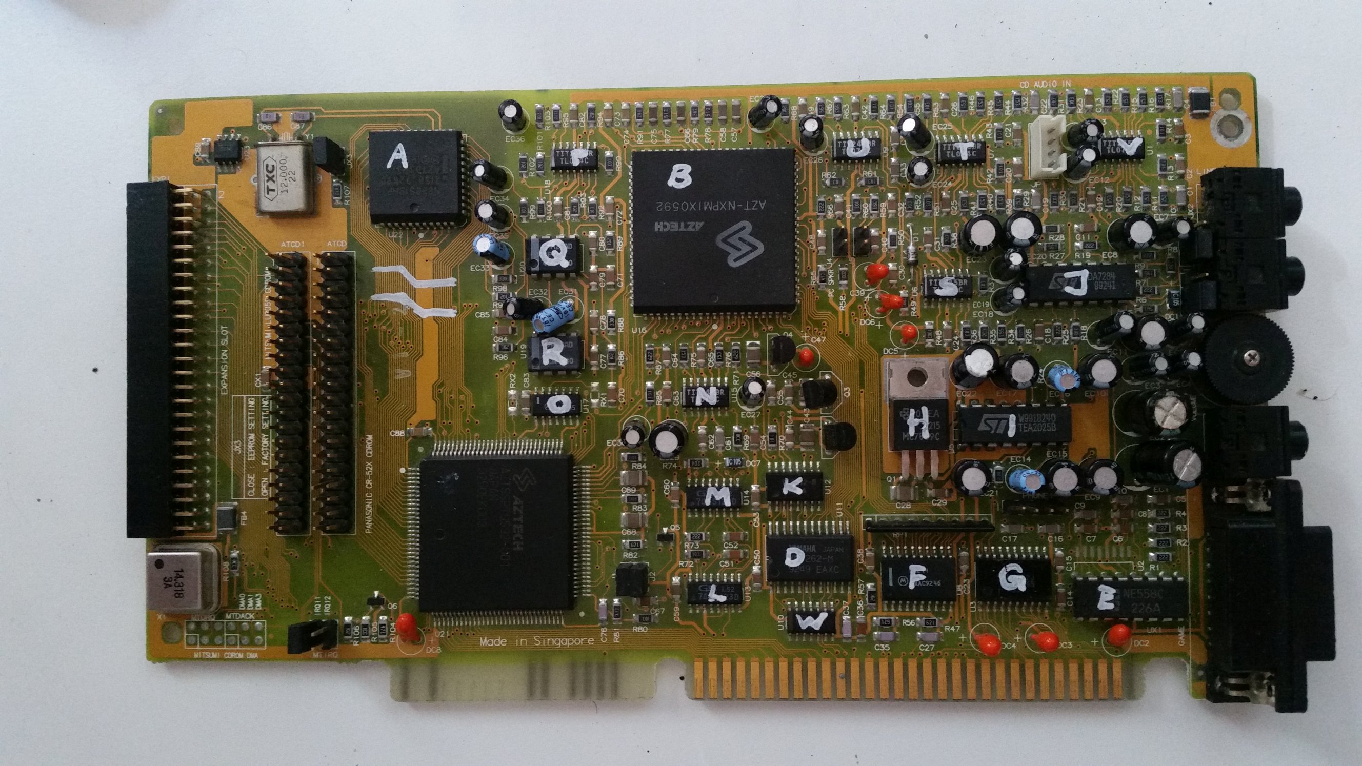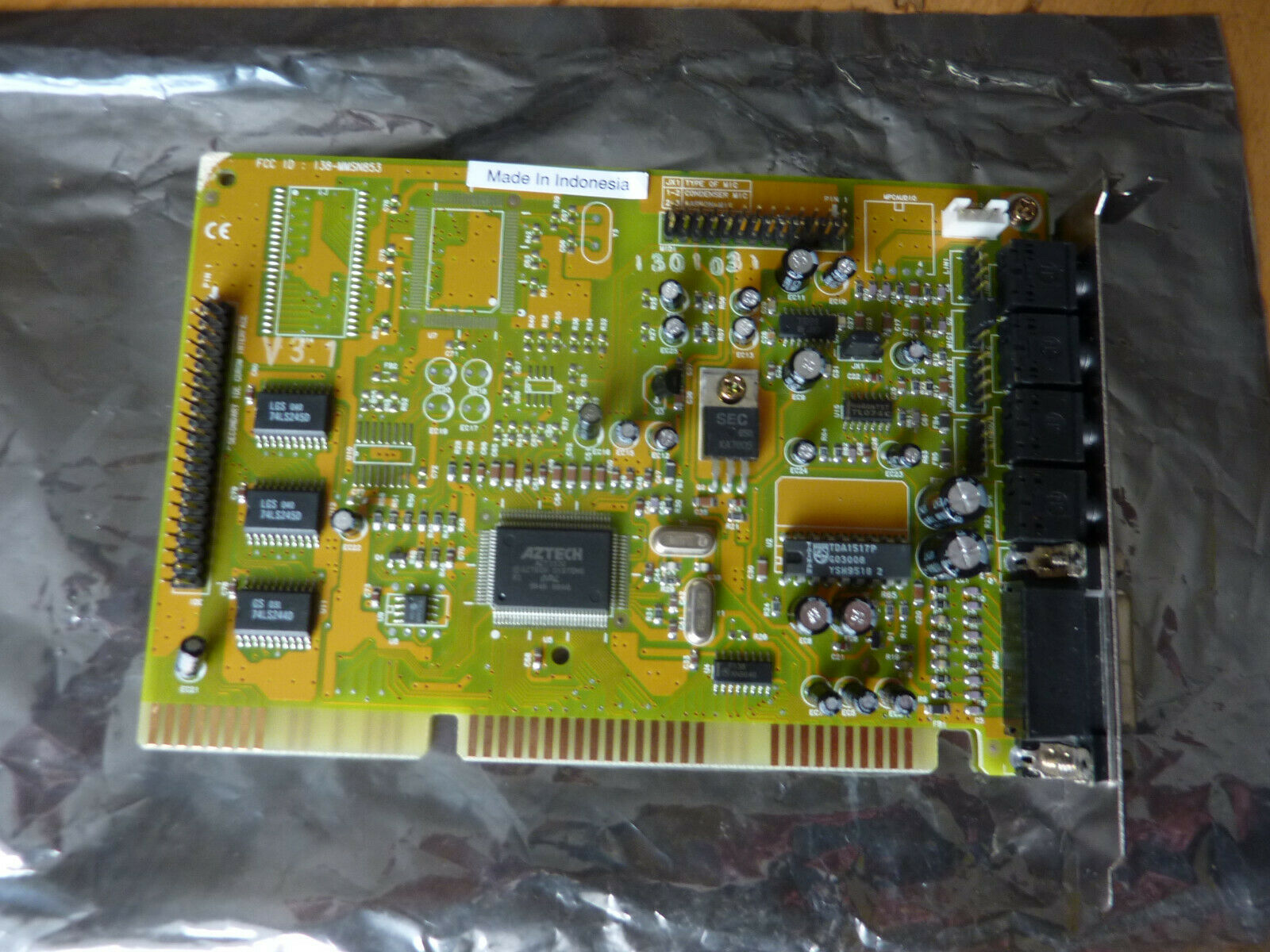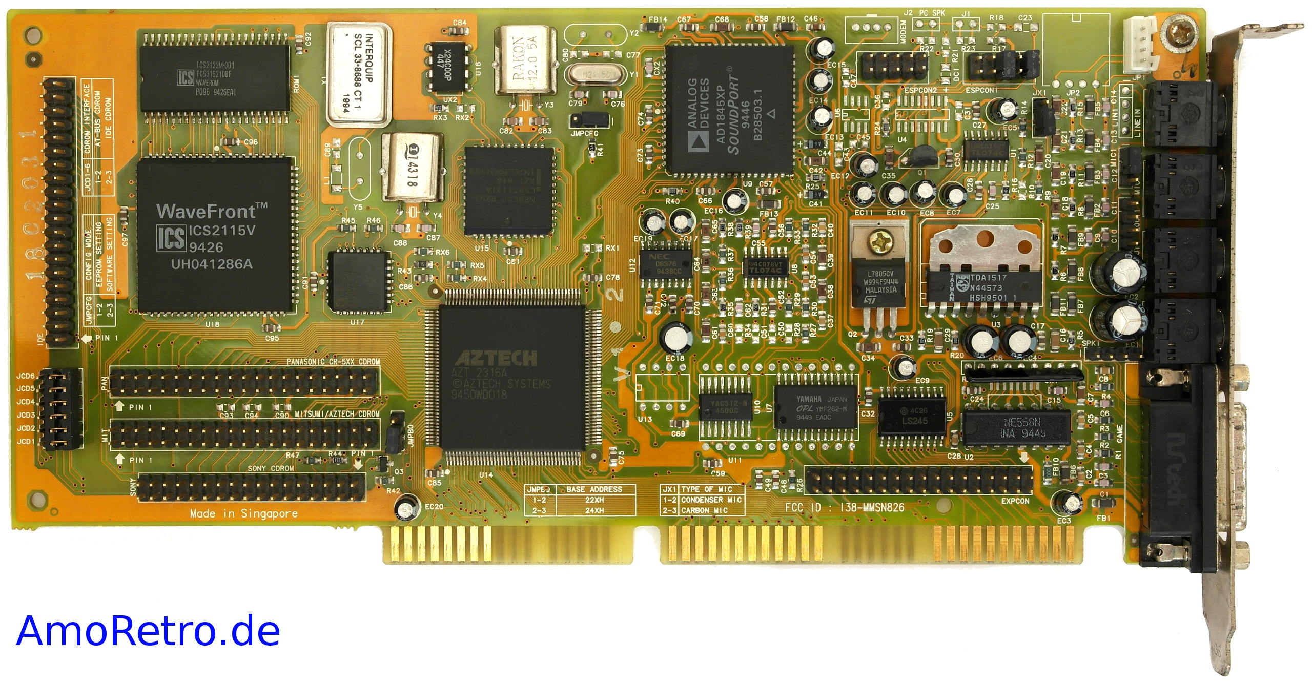 This is one of the last cards produced by Aztech that is *not* PnP. It has no wavetable header since it has embedded wavetable support in the form of the Aztech AZ3320, which is a rebranded SEC (Samsung) 0164 and a 1 MB ROM that holds the samples.