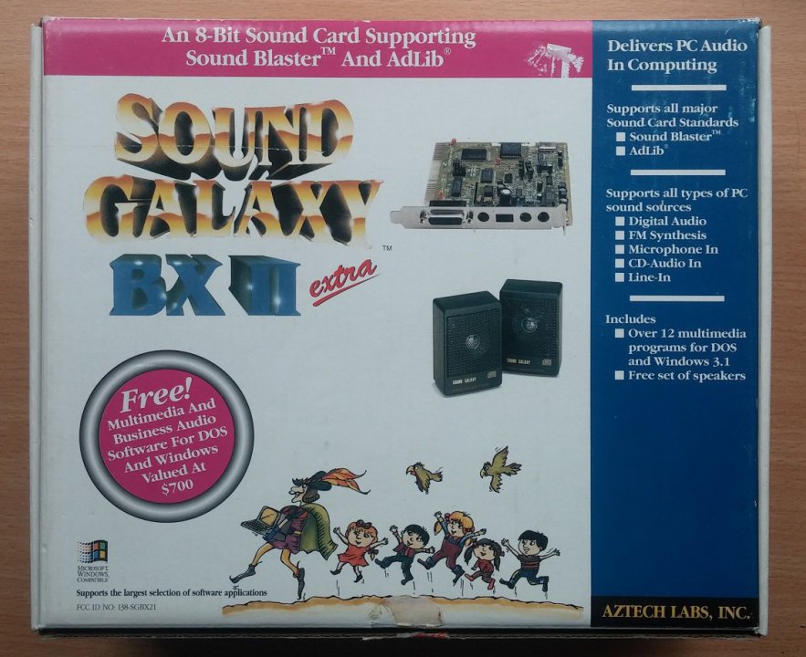 Ad Lib, Sound Blaster 2.5, Covox and Disney compatible. The NXII cards got a stereo line-in and had AGC (automatic gain control), which helped balance the output.