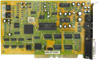 Ad Lib and Sound Blaster-compatible sound card. No Covox or Disney support. Just like the original Sound Blaster it imitates, the BX got a volume control thumbwheel on the backplate. |