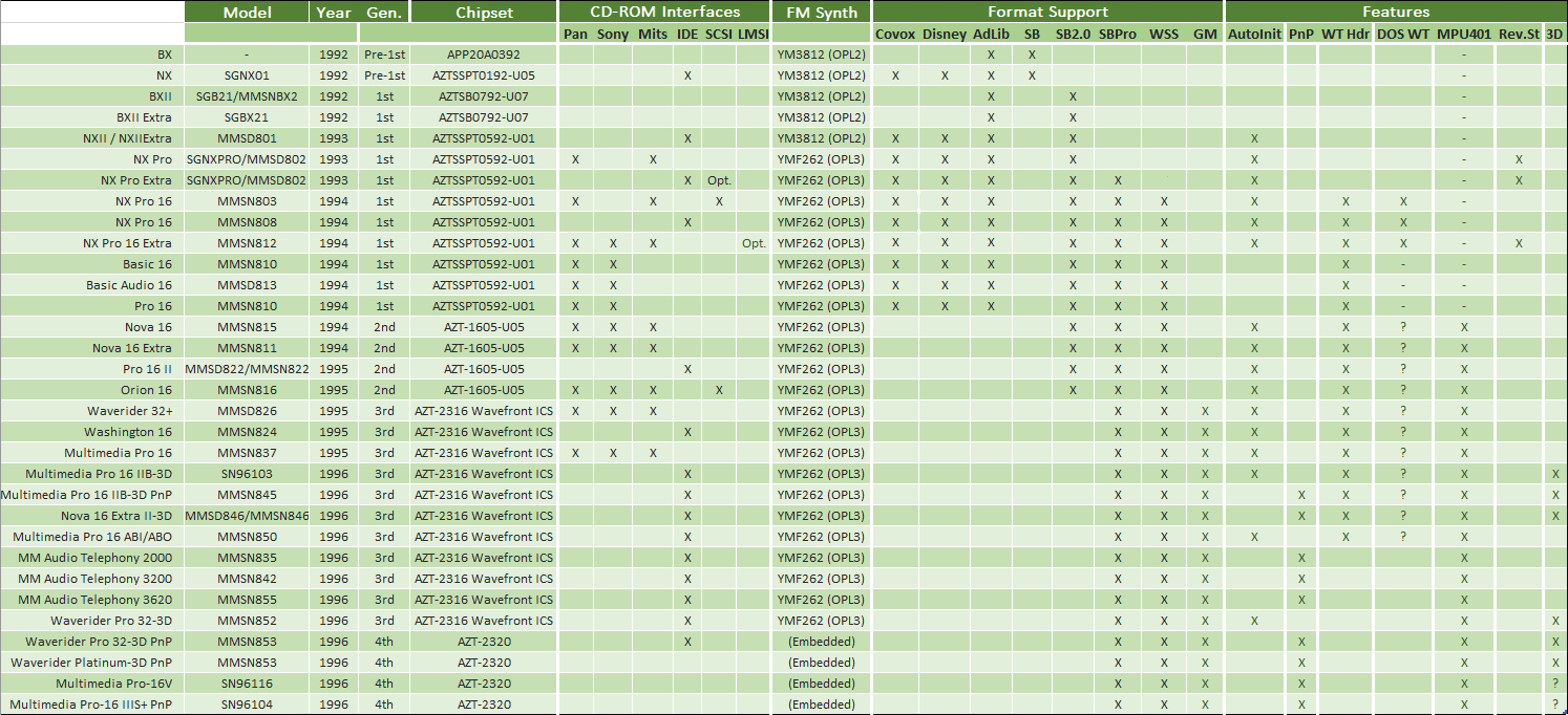 The 4th-generation cards are based around the AZT-2320 chipset. These still come in both PnP and non-PnP variants. For DOS gaming, the PnP ones are naturally more difficult to configure (you usually need to load the DWCFGMG.SYS driver at startup - this is the Intel PnP configuration manager - and then run DIAGNOSE.EXE), so probably best to avoid these cards for that purpose. The 4th generation really doesn't provide any benefit over the 3rd-gen cards either, and since most 4th-gen cards are PnP, I would advise sticking to 3rd-gen non-PnP cards.