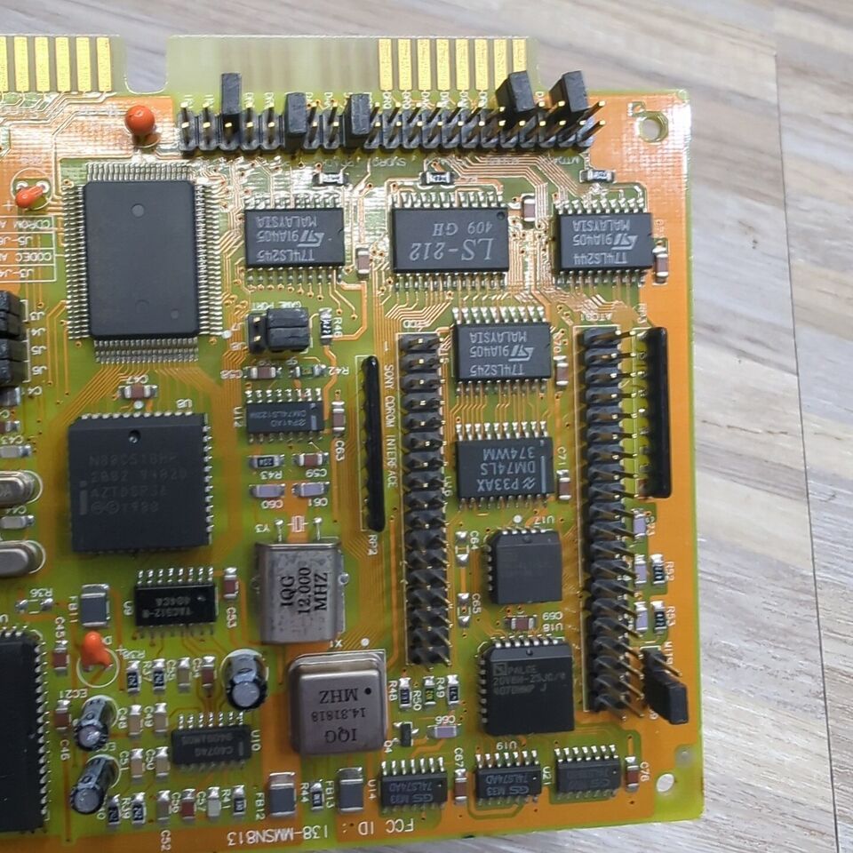 Some NX Pro cards (like the one shown above) have a Mitsumi and Panasonic CD-ROM header, compatible with the Mitsumi LU005S or Panasonic CR-521 and CR-522 CD-ROM drives. Others have a SCSI and AT (IDE) CD-ROM header - this was called "NX Pro Extra". Aztech provided an optional 'Future Domain SCSI Upgrade Kit' which included a Future Domain SCSI controller chip and device driver software. The large socket in the top-left corner of these cards is for this SCSI controller chip (see first image below).