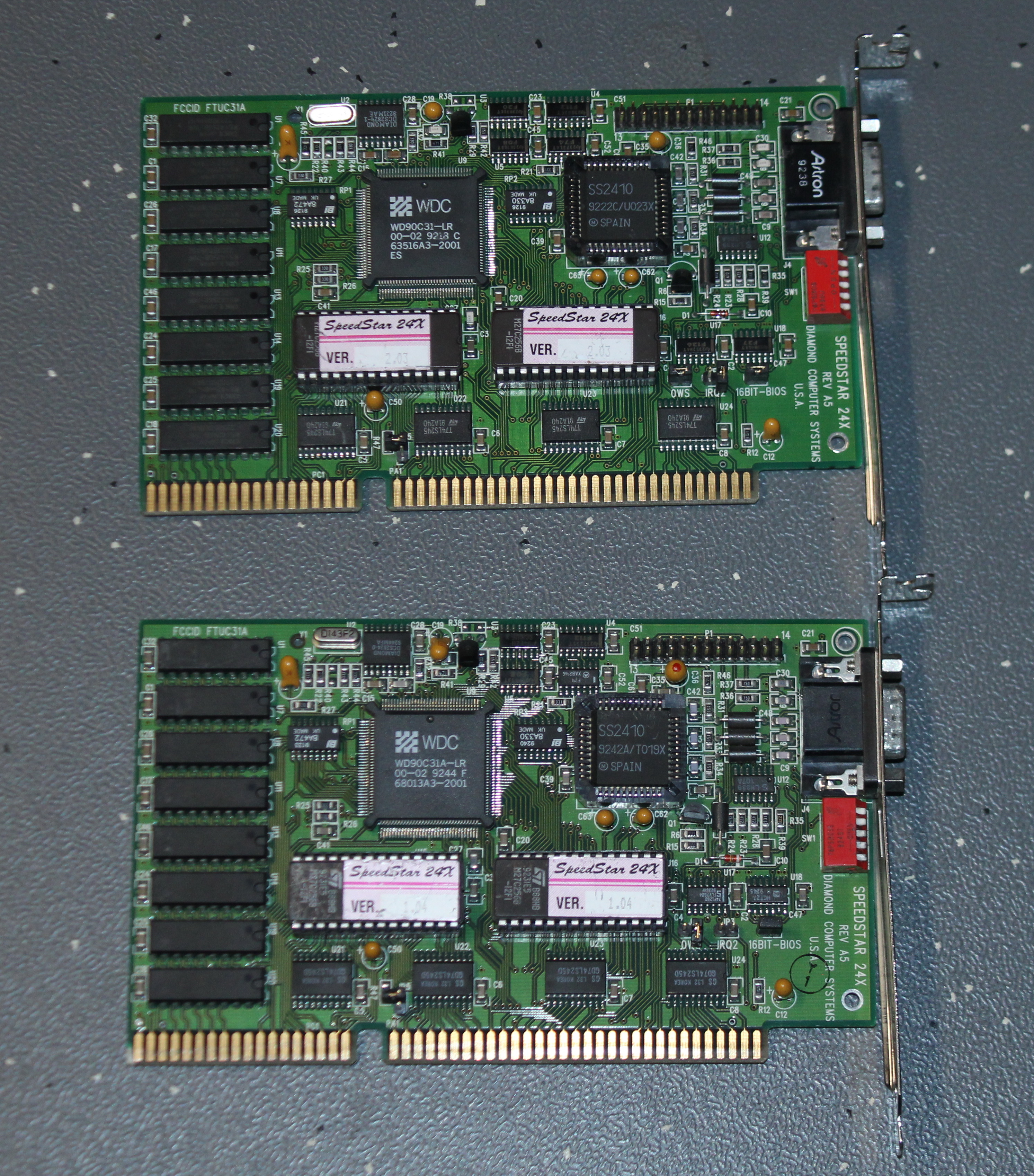 Images of two SpeedStar 24X cards with different BIOS versions, courtesy of Andy Welburn of Andy's Arcade