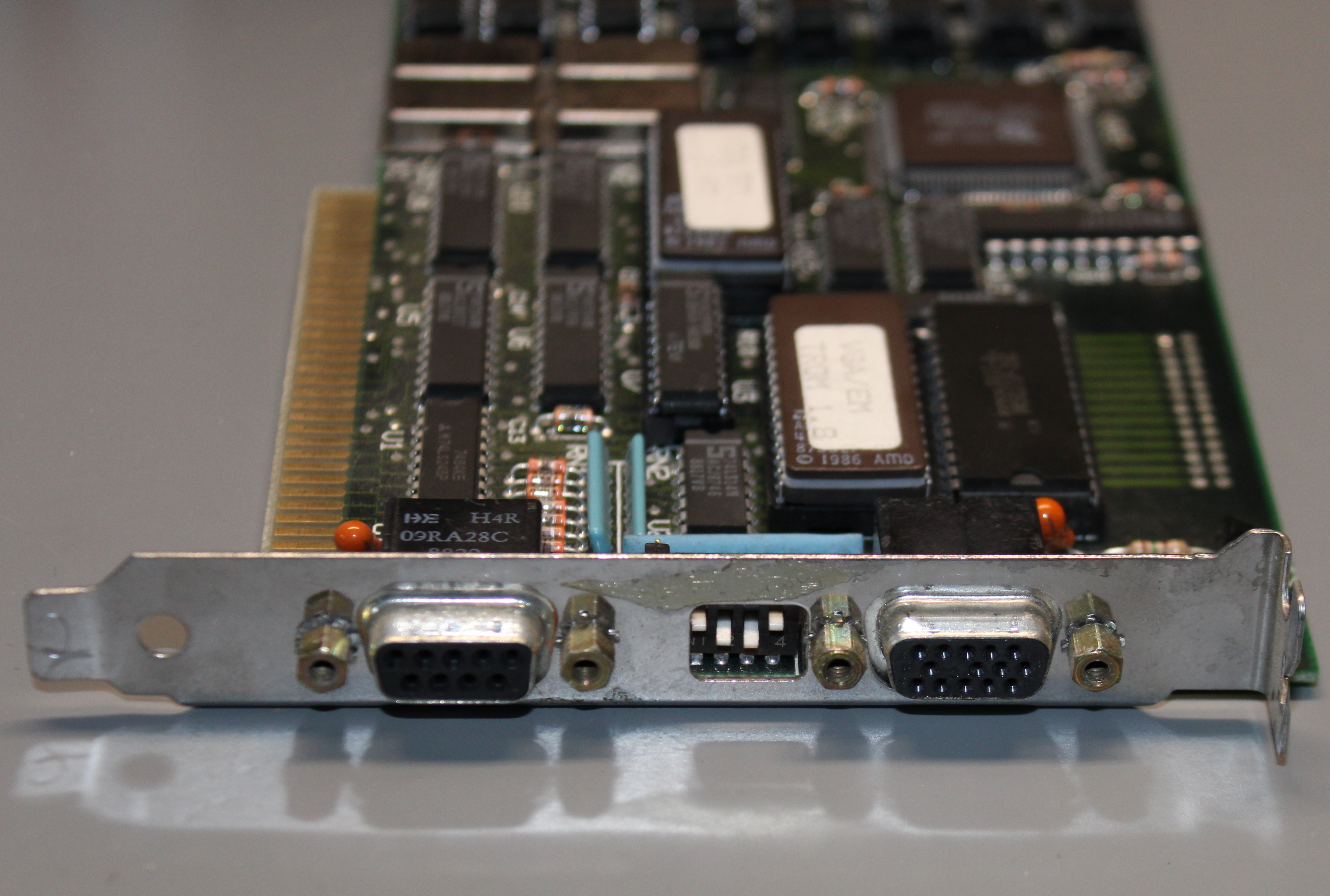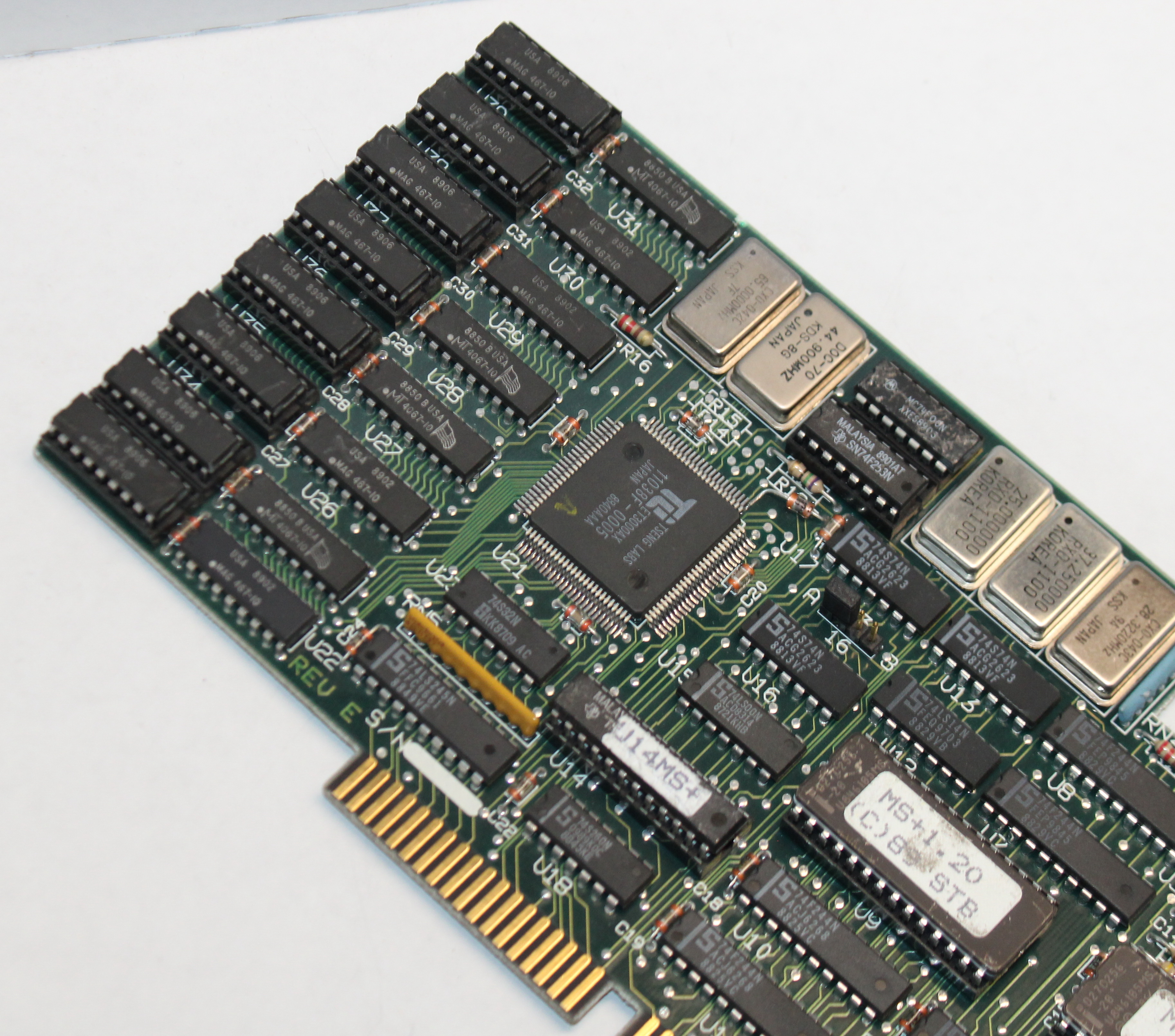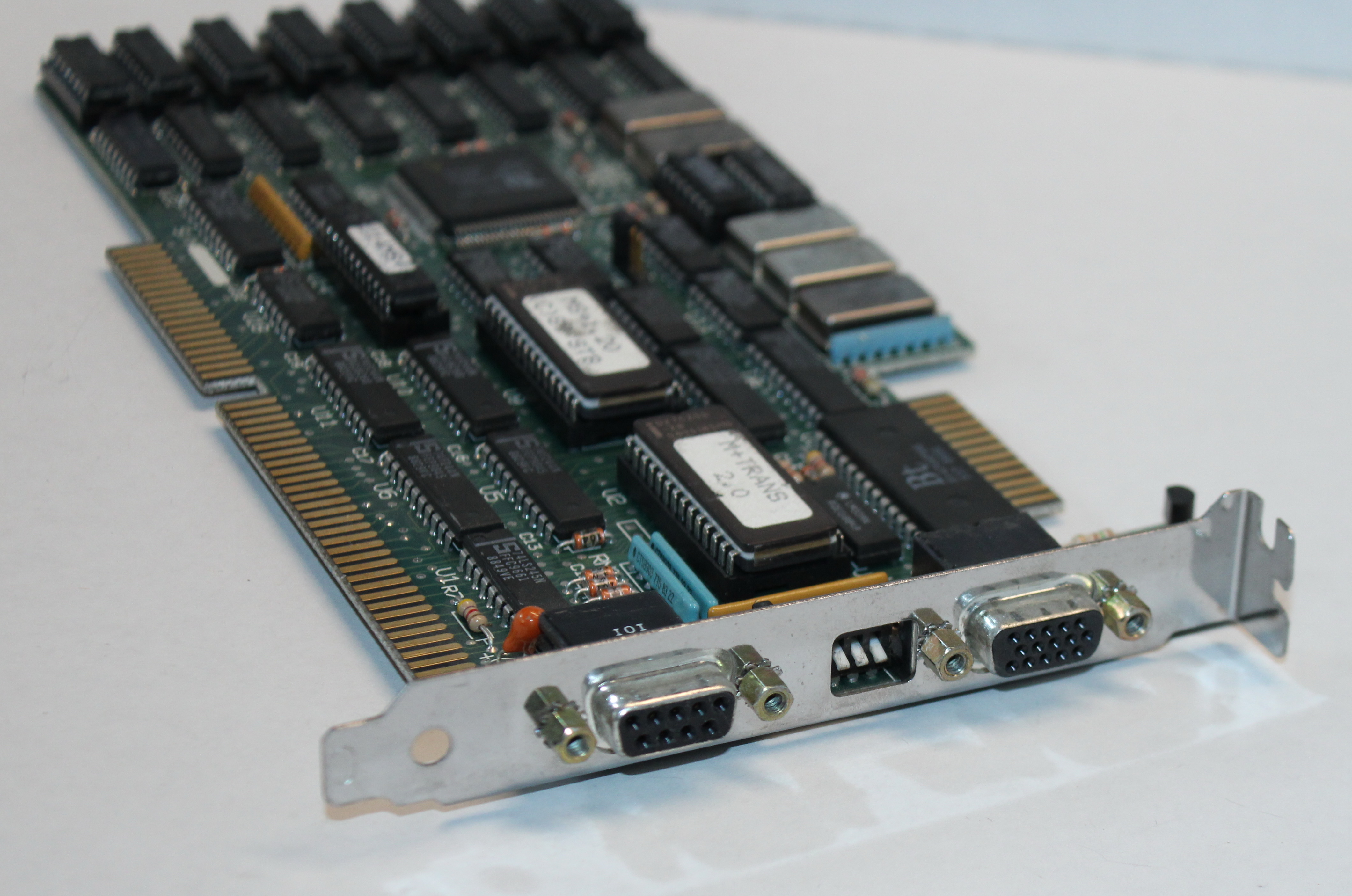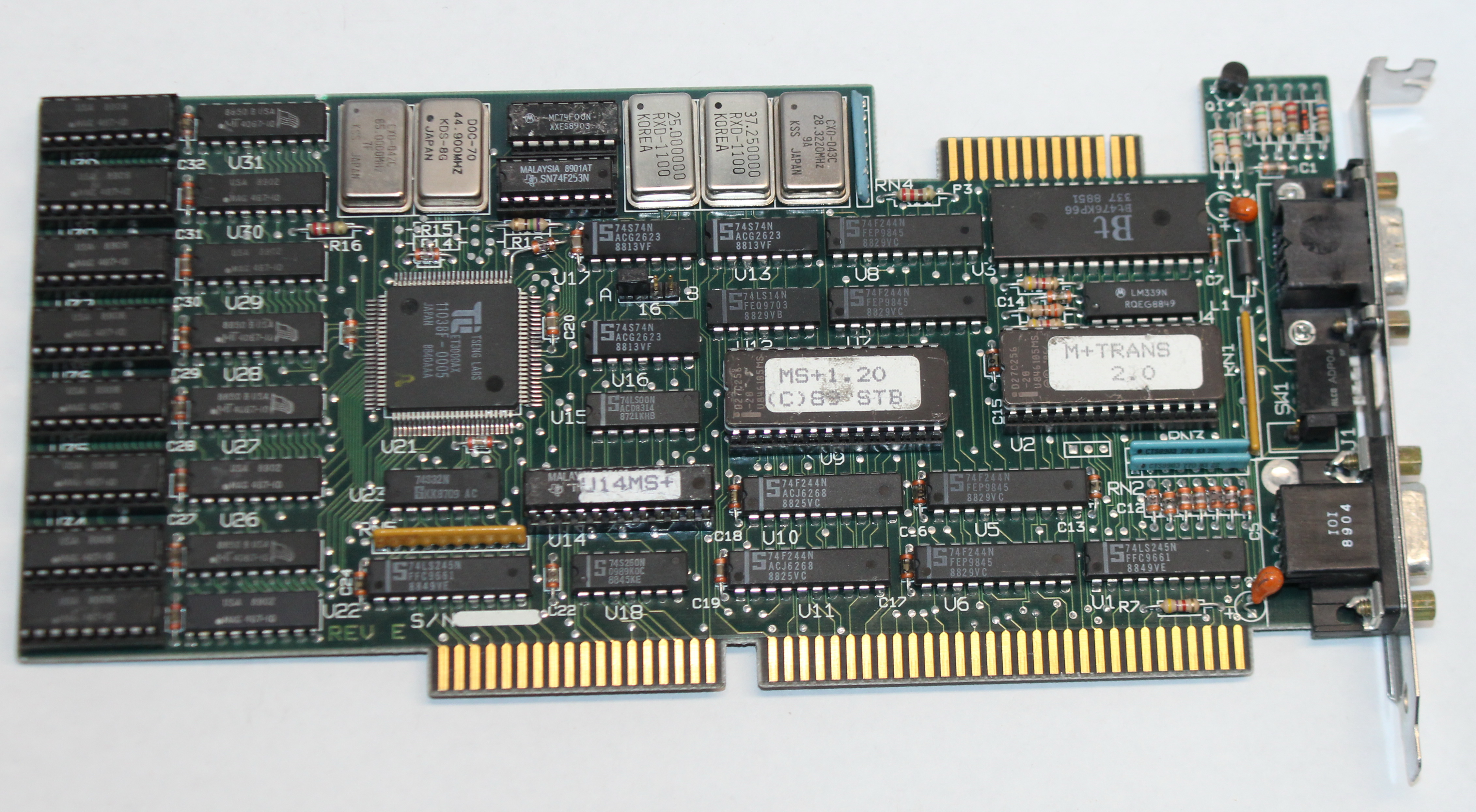 The MS+ was a later Super VGA card based on the Tseng Labs ET3000 chipset. It came with 256 KB soldered-in, but could be upgraded to 512 KB via eight 64Kx4 DRAM chips.