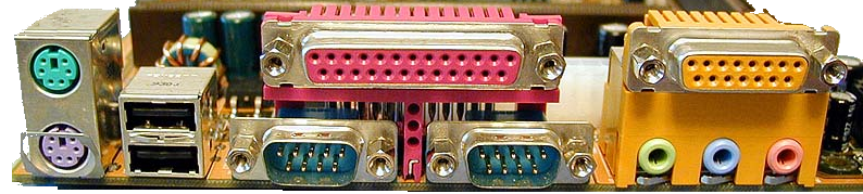 The humble game port that most of us remember on PCs of old was the 15-pin "DA-15" port. Lots of third-party expansion card manufacturers create their own version of IBM's Game Control Adapter, and these became known simply as 'Game Cards'. They would typically have two 15-pin game ports, to support two joysticks at the same time. Sound cards would also include a game card into their circuitry. Around 1998, some PC motherboards embedded a lot of the more common ports and sockets directly, and so came with a 'backplate', and in some cases included a single game port, directly available from the rear of the computer.