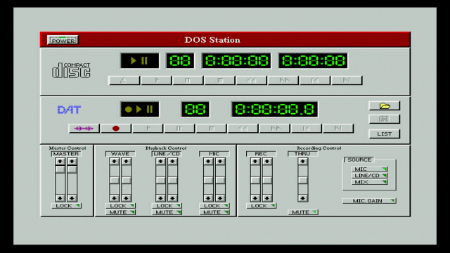 You can use DOS Station to record audio from your Mic-In or Line-In jacks, playback .WAV files or audio from your CD-ROM if installed. You can even create playlists which are stored in .PL files in the directory for later playback.