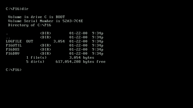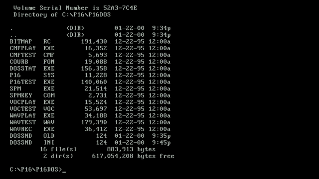 Here are the contents of the C:\P16 and C:\P16\P16DOS directories:-