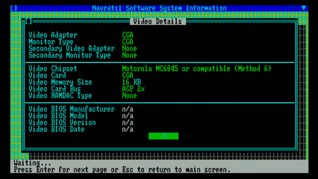 In this final Part 3, we'll take a look at the Octek's emulation modes that support the MDA, Hercules and EGA standards. This is important if you use a VGA card like this to play old CGA or EGA games, as many of these games exploited certain characteristics of a true CGA or EGA card, which many chipsets that provide only emulation fail to do well.