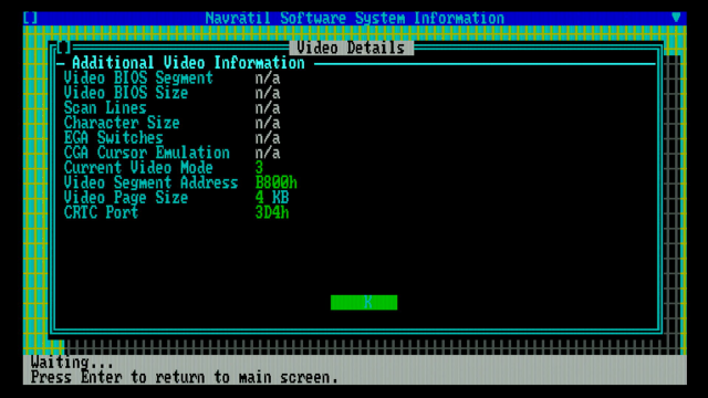 Now to check what the card appears to be when running in CGA Emulation mode: