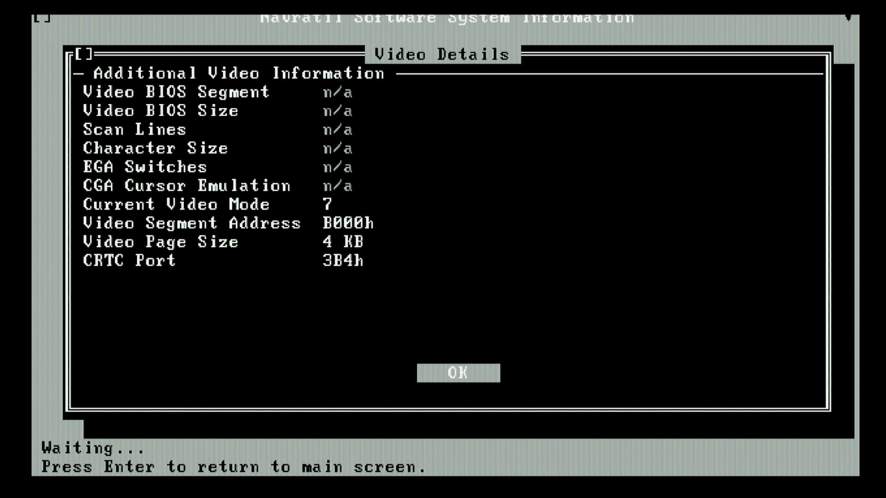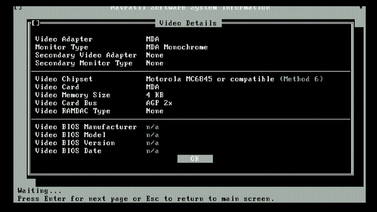 NSSI with MDA Emulation enabled - again, ignore the AGP 2x detection due to my motherboard's embedded AGP bus