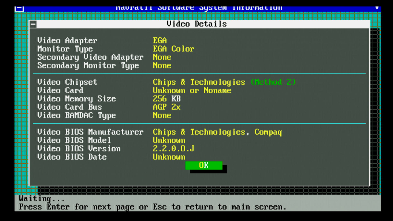 It does have good emulation capabilities though. After seeing that 4D Sports Driving caused some real problems in both EGA and Hercules modes, I ran several other games to see if the same thing would happen - it did not, but this is far from an exhaustive test. The card does support a number of extended text modes for DOS applications that have the ability to run in higher than 80 columns and 25 rows, and it comes with a large amount of DOS application drivers.