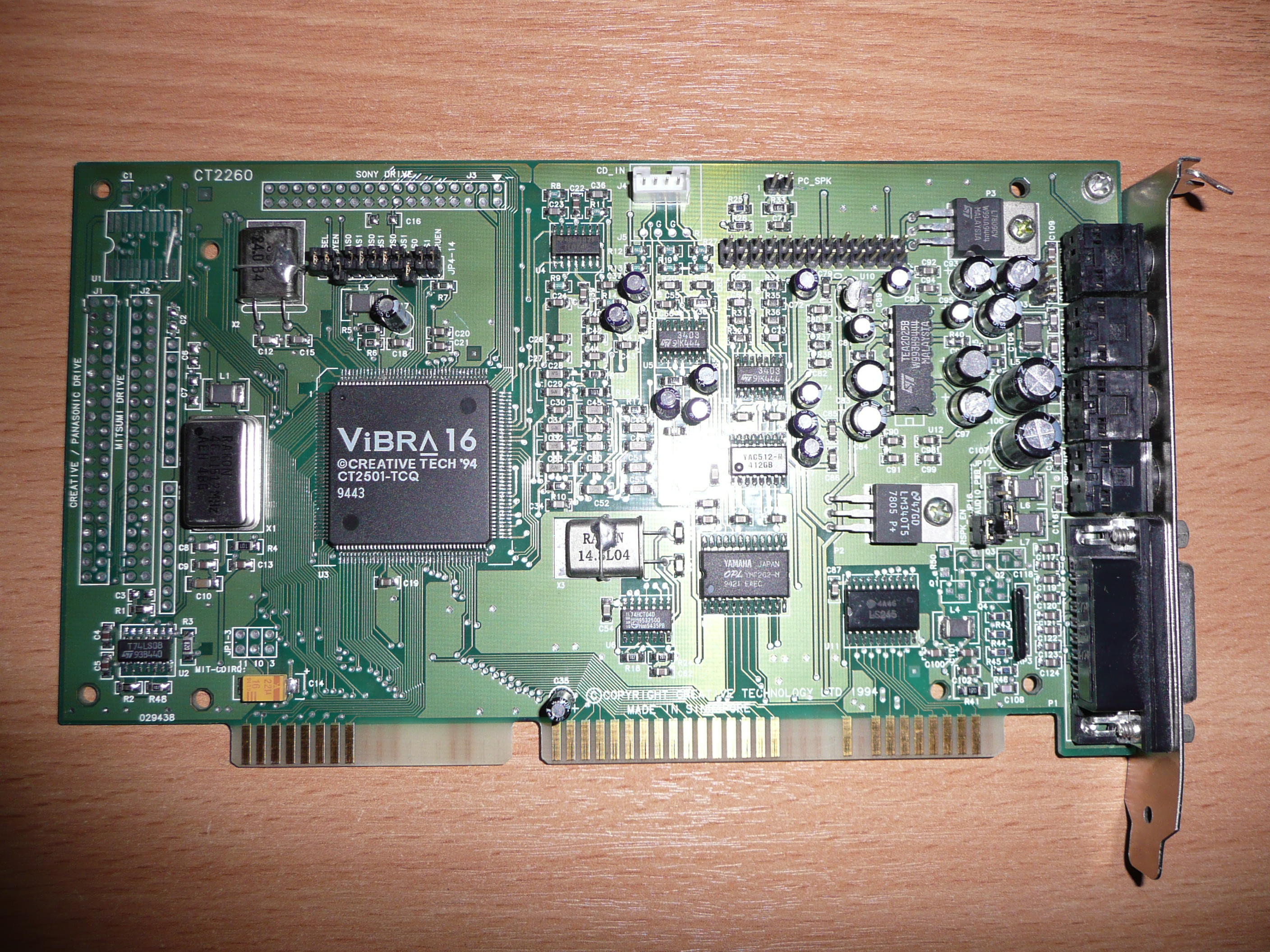The CT2810 is another strange card in that it shares its FCC ID with the CT2290 range, but has the ViBRA-16 chip the same as the CT2260. But unlike the CT2260, the CT2810 gets an IDE CD-ROM interface.