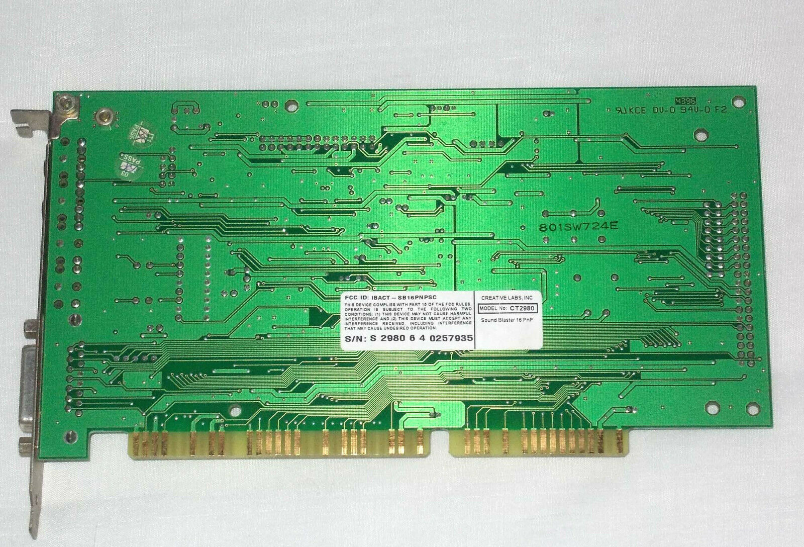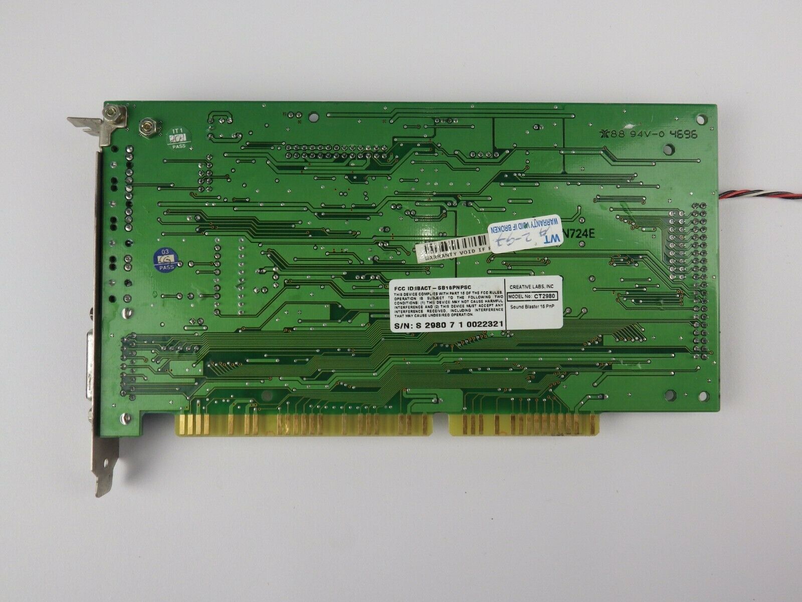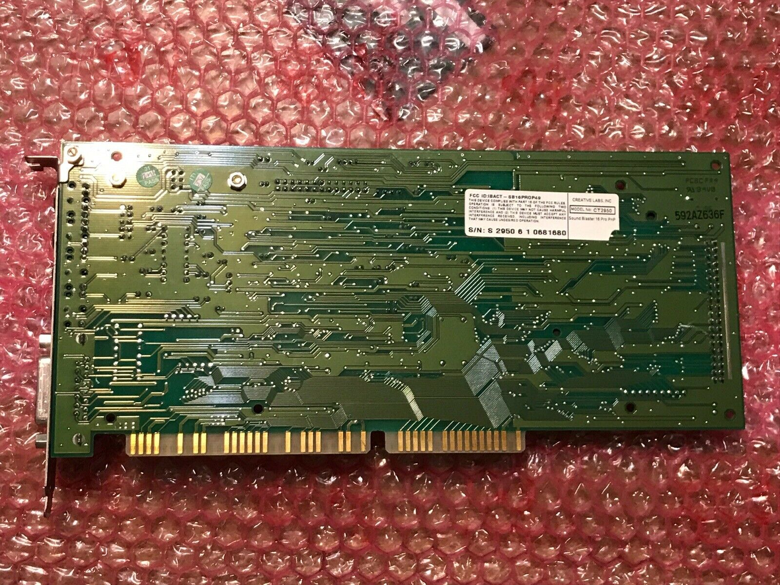 This is a Value edition card and is the OEM version of a CT2959. It has the ViBRA 16S chipset and a real full-size Yamaha YMF262 (OPL3) chip. This was the first Creative card to use their new CT1705 bus interface chip which provided it with full Plug & Play capability. Most other 2nd-generation SB16s had the bus interface logic embedded in the CT1747 chip or in the ViBRA chip (CT2501 or CT2504) on ViBRA cards.