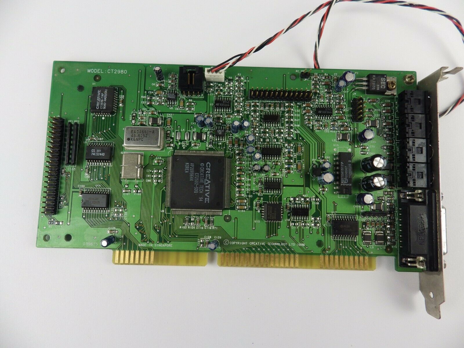 Some boards with revision 49517 removed the Line Out socket on the backplate as well as the IDE interface connector. This must have been an unknown submodel of the CT2800, e.g. CT2801 or CT2809, though still kept the base model CT2800 code on the silkscreen (which was standard behaviour with Creative's sound cards).
