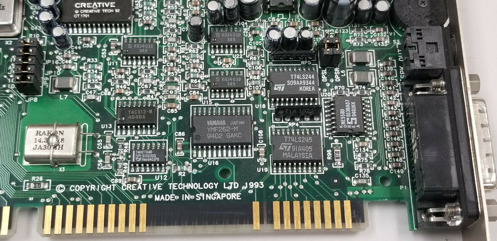 Creative Labs introduced the 2nd generation of Sound Blaster 16 cards in 1994, starting with the CT2230. The key difference from the 1st generation is that the Yamaha YMF262 was now gone as a discrete chip. Instead Creative Labs integrated the YMF262 into their own chip called "CT1747". These chips got the official "OPL" logo stamped on them, as they did contain the Yamaha circuitry inside. Also sadly gone was the hardware thumbwheel volume control.