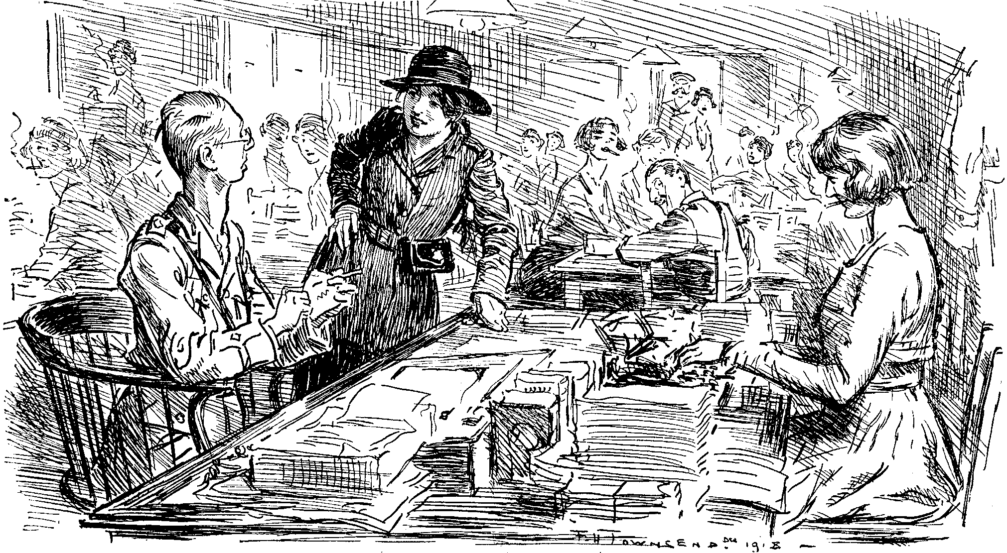"Had you asked me that six weeks ago," I said, "I should have answered 'No.' Before I spoke to Edith, that very same question flashed up within me. I saw the golden sheen of her hair in the moonlight—for you do sometimes have moonlight here in London—and wondered whether I had the right to speak. Of course I was not good enough for her, but still I felt that I was not altogether unfit. I might justly ask for her in the face of high Heaven, the Passport Bureau at Washington, the War Zone Bureau at the Custom-House, the head clerk at the Cunard office, the watchman at the pier, the official who changed my American money into your own very confusing monetary system, the man at the head of the gang-plank, the man at the foot of the gang-plank, the steward who filled my alien's declaration, the steward who gave me my landing-card, several battalions of control officers, and approximately half the Allied diplomatic services. When I spoke to Edith I had all the documents in my breast-pocket, and my heart glowed with justifiable confidence beneath them. The dear girl never asked for my college certificate and my luggage check, but I have them all here."