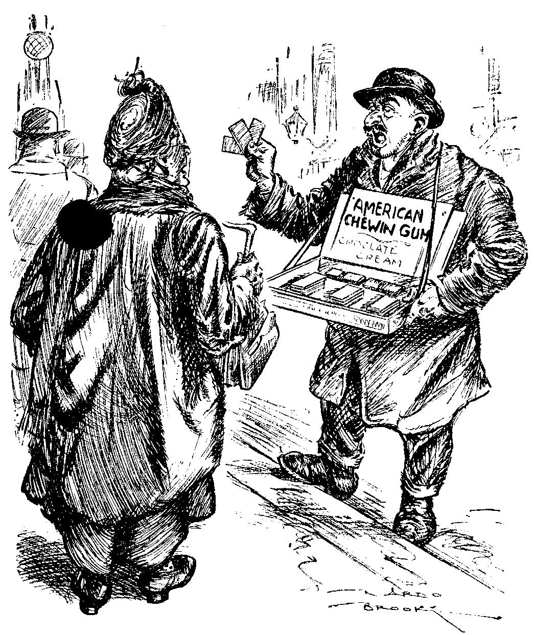 Topical Huckster. "'ERE YOU ARE, LADY—AS CHEWED BY THE PRESIDENT."