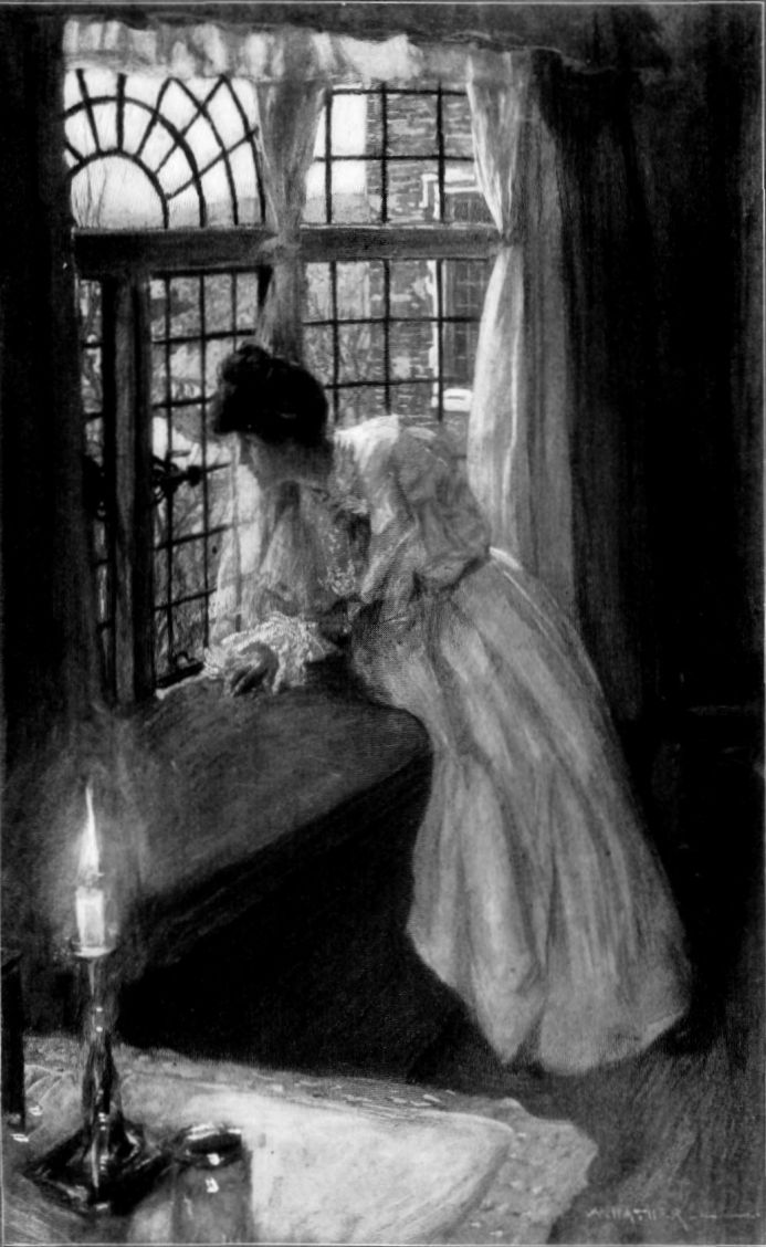The panelled room behind her was dimly lit by a solitary candle, just kindled. The faint dawn in front, the flickering candle-light behind, illumined Diana's tall figure, wrapped in a white dressing-gown, her small head and slender neck, the tumbling masses of her dark hair, and the hand holding the curtain. It was a kind and poetic light; but her youth and grace needed no softening.