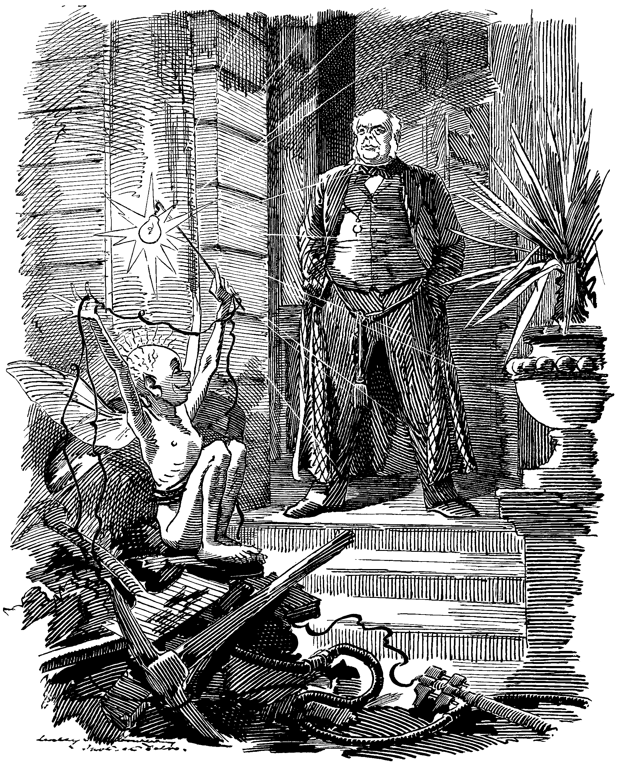 Electric Light. "WHAT, WON'T YOU LET ME IN—A DEAR LITTLE CHAP LIKE ME?"