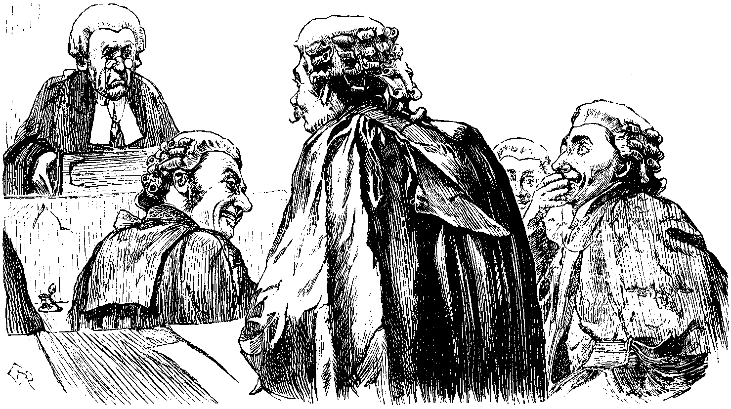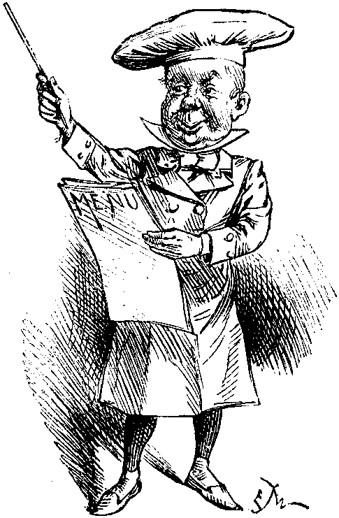 However, the evening was so remarkable that I at once sat down next day to record all that I could remember of this strange Christmas Party. Round the table were ROBERT ELSMERE, DORIAN GRAY, Sir ALAN QUATERMAIN, the MASTER of BALLANTREE, and other distinguished persons, including Princess NAPRAXINE,—a charming woman, who looked remarkably well in her white velvet with a knot of old lace at her throat and a tea-rose in her hair. Mrs. HAWKSBEE, too, looked smart in black satin, but in my opinion she was cut out by little DAISY MILLER, a sprightly young lady from America. My host (I wish I could remember his name) carried his love of celebrities so far, that even his servants were persons of considerable notoriety. His head butler, a man named MULVANEY, was an old soldier, who, with the two footmen (formerly his companions-in-arms) had been known in India by the name of "Soldiers Three."