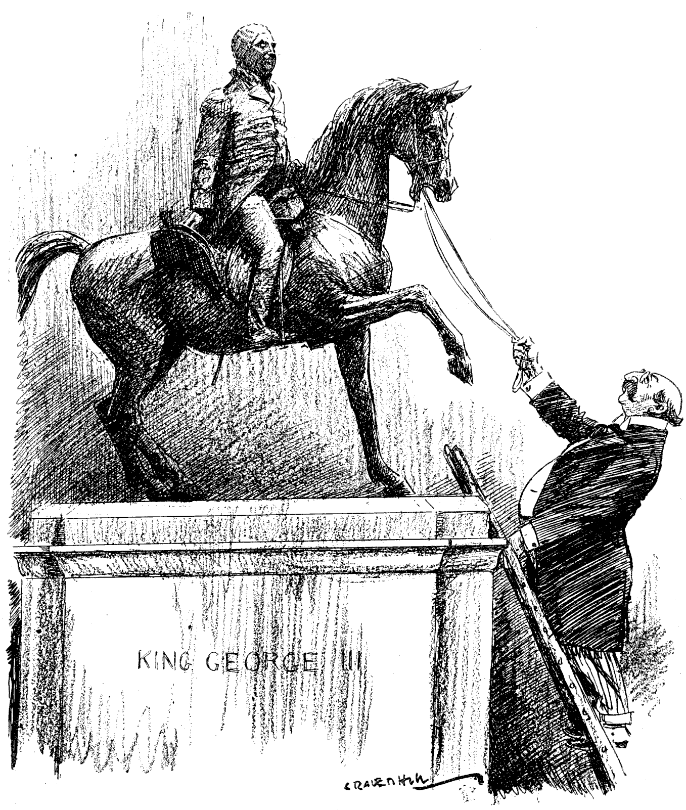 A few of the figures feel secure, of course, but very few. Nelson on his column has no fears; Nurse Cavell is too recent to tremble; so is Abraham Lincoln. But the others? They are in a state of nervous suspense, wondering if the sentence of banishment is to fall and resenting any disturbance of their lives. "J'y suis, j'y reste" is their motto.