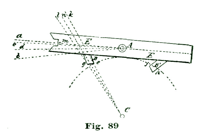 The spring G is made of a piece of steel one-eighth of an inch square, and secured to the bar E with a screw and steady pins at m. A pen and pencil point attachment can be added to the spring G; but in case this is done it would be better to make another spring like G without the point j, and with the adjusting screw placed at l. In fitting pen and pencil points to a spring like G it would probably be economical to make them outright; that is, make the blades and screw for the ruling pen and a spring or clamping tube for the pencil point.