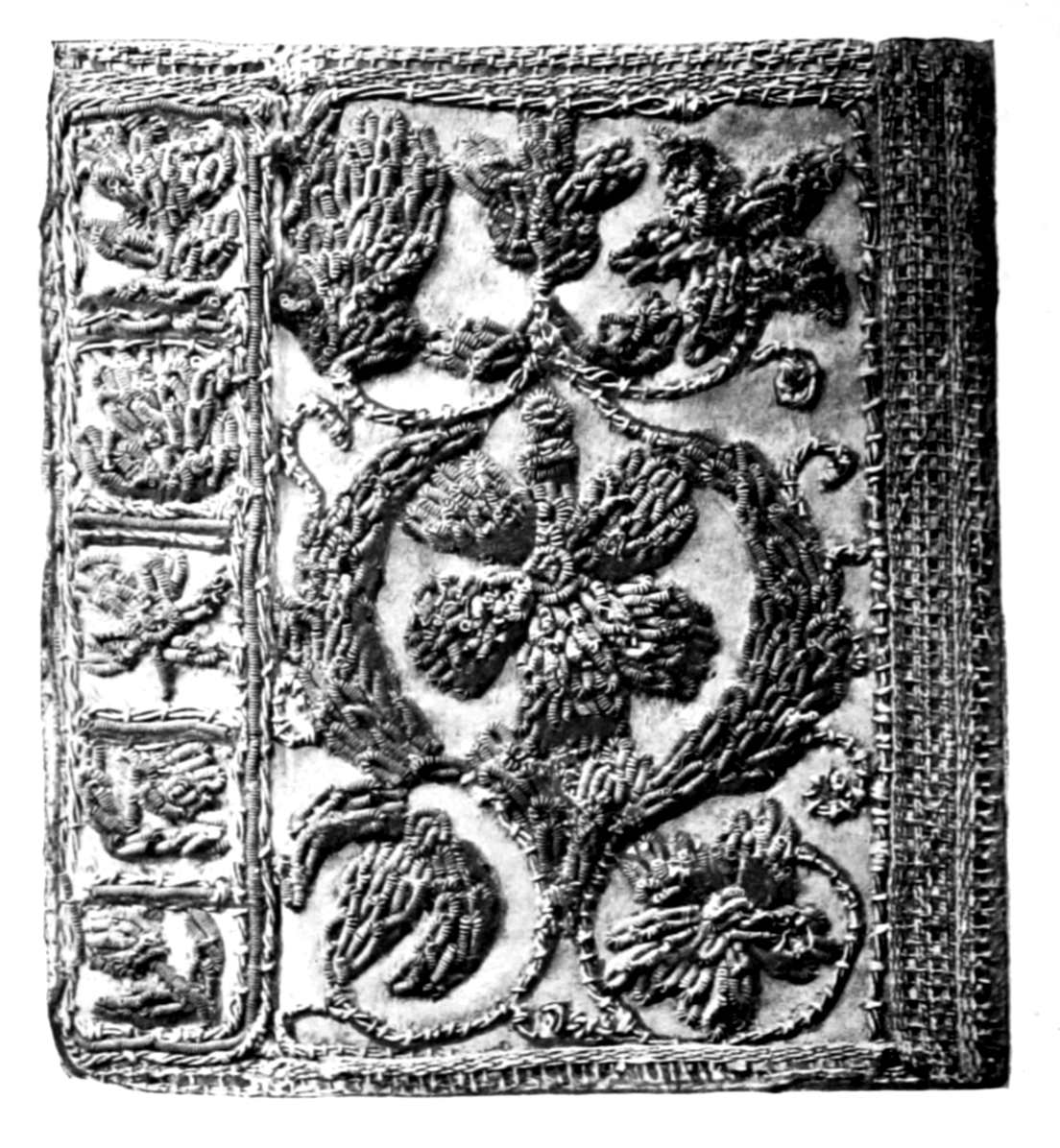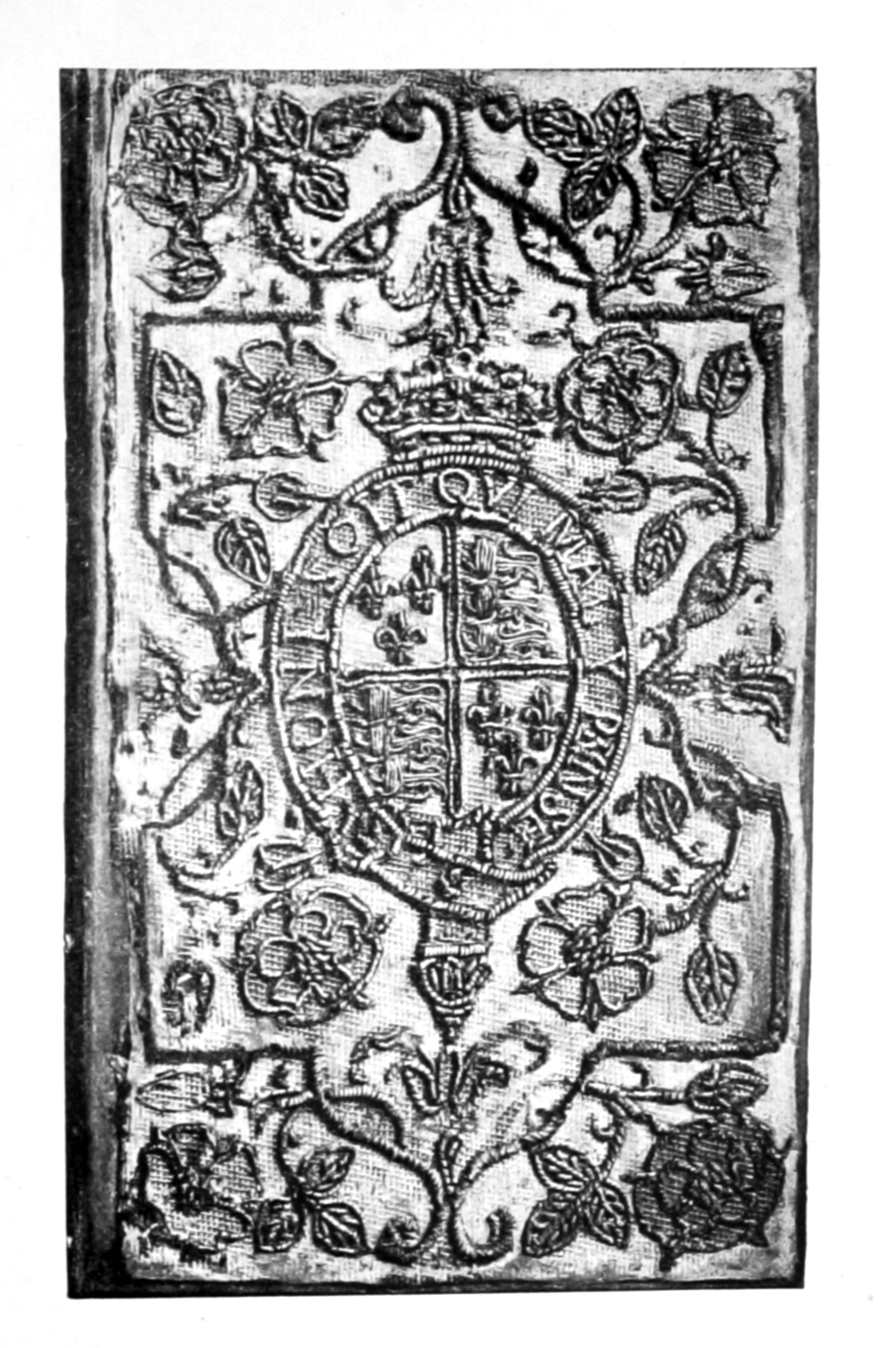 The Project Gutenberg EBook of English Embroidered Bookbindings, by Cyril James Humphries Davenport This eBook is for the use of anyone anywhere at no cost and with almost no restrictions whatsoever. You may copy it, give it away or re-use it under the terms of the Project Gutenberg License included with this eBook or online at www.gutenberg.org Title: English Embroidered Bookbindings Author: Cyril James Humphries Davenport Editor: Alfred Pollard Release Date: January 23, 2006 [EBook #17585] Language: English Character set encoding: ISO-8859-1 *** START OF THIS PROJECT GUTENBERG EBOOK ENGLISH EMBROIDERED BOOKBINDINGS *** Produced by K.D. Thornton, Bruce Albrecht, and the Online Distributed Proofreading Team at http://www.pgdp.net (This file was produced from images generously made available by The Internet Archive/Canadian Libraries)
