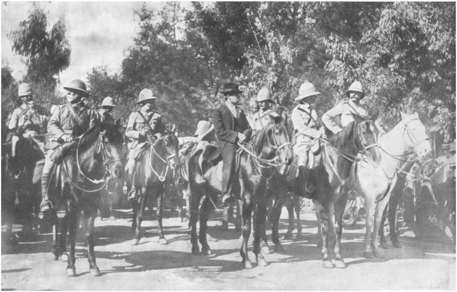 It is not my intention to go into the details of the first encounters with the enemy, nor to describe the siege-comedy of Mafeking, where Baden-Powell, as principal actor, maintained a humorous correspondence with the Boers; nor of Kimberley, where Cecil Rhodes said he felt as safe as in Piccadilly; nor of Dundee, where the Boers were said to have found a large number of brand-new side-saddles, originally destined to be used by British officers on arrival at the capital, where they hoped to take the ladies of Pretoria riding, but ultimately consigned to the flames by the indignant brothers and lovers of those very ladies; nor of the fine linen, silver, cut-glass, and fingerbowls found and destroyed by the Boers in the luxurious British camp at Dundee. I shall not dwell upon the glorious victories of the first months, the capture of armoured trains, the blowing up of bridges, the besieging of towns, the arrival in Pretoria of the first British prisoners and the long sojourn of British officers in captivity in the Model School—from where, incidentally, Winston Churchill escaped in an ingenious way—and the crushing news of the first Boer reverses at Dundee and Elandslaagte.