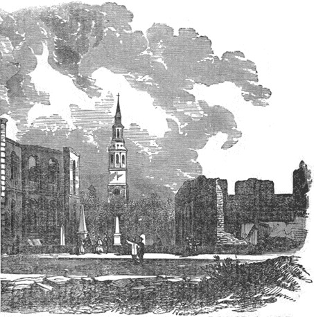 But Governor Pickens little dreamed that the discharge of his guns upon the United States flag at Fort Sumter would awaken such an outburst of patriotism as immediately followed all over the North, uniting the people of all classes in a determination to maintain the majesty of the Union, and vindicate the honor of the flag. How little he foresaw the mighty sweep and terrible devastation of the pitiless storm of civil war which now burst over the land, and which never departed from the soil of South Carolina till every rebel ensign was "lowered and trailed in a sea of blood;" till slavery, the cause of the conflict, was forever abolished, and the power9 of the United States firmly re-established on land and sea.