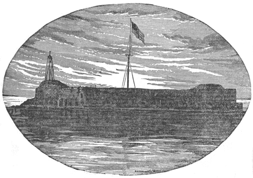 To prevent this, Major Robert Anderson, an able and loyal southern officer, commanding a small garrison of United States troops in Fort Moultrie, hastily removed, on the night of the 26th of December, to Fort Sumter, a much stronger but unfinished fortress in the middle of the harbor, hoping to maintain his position there till reinforced. But before this could be effected by President Lincoln, who had plainly advised Governor Pickens of his intention, a formal demand for the surrender of the fort was made7 by General Beauregard, commanding the rebel forces, which being promptly refused by Major Anderson, the order to reduce the fort was given by the Confederate government. On the morning of Friday, the twelfth of April, 1861, at half-past four, the first shot was fired upon Fort Sumter, which aroused and excited the nation, and begun the war of the Rebellion. For two days the assault continued, when after a most gallant defense by the little garrison of eighty men, Major Anderson was compelled to accept terms of evacuation. On Sunday afternoon, April 14th, he marched out of the fort with colors flying and drums beating, saluting the United States flag, as it was lowered, with fifty guns.