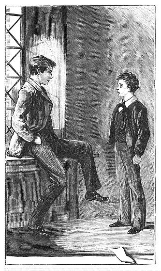 That handsome, jovial-looking boy of sixteen who is sitting there astride of a chair, in the middle of the floor, biting the end of a quill pen, is the redoubtable Horace Wraysford, the gentleman, it will be remembered, who is in want of a fag. Wraysford is one of the best “all-round men” in the Fifth, or indeed in the school. He is certain to be in the School Eleven against the County, certain to win the mile race and the “hurdles” at the Athletic Sports, and is not at all unlikely to carry off the Nightingale Scholarship next autumn, even though one of the Sixth is in for it too. Indeed, it is said he would be quite certain of this honour, were it not that his friend and rival Oliver Greenfield, who is standing there against the wall, with his head resting on a map of Greece, is also in for it. Greenfield does not strike one as nearly so brilliant a fellow as his friend. He is quieter and more lazy, and more solemn. Some say he has a temper, and others that he is selfish; and generally he is not the most popular boy in Saint Dominic’s. Wraysford, however, sticks to him through thick and thin, and declares that, so far from being ill-tempered and selfish, he is one of the best fellows in the school, and one of the cleverest. And Mr Wraysford is prepared to maintain his allegation at the point of the—knuckle! That hulking, ugly youth is Braddy, the bully, the terror of the Guinea-pigs, and the laughing-stock of his own class-mates. The boy who is fastening a chalk duster on to the collar of Braddy’s coat is Tom Senior, the Doctor’s eldest son, who, one would have imagined, might have learned better manners. Last, not least (for we need not re-introduce Messrs Ricketts or Bullinger, or go out of our way to present Simon, the donkey of the Form, to the reader), is Master Anthony Pembury, the boy now mounting up onto a chair with the aid of two friends. Anthony is lame, and one of the most dreaded boys in Saint Dominic’s. His father is editor of the Great Britain, and the son seems to have inherited his talent for saying sharp things. Woe betide the Dominican who raises Tony’s dander! He cannot box, he cannot pursue; but he can talk, and he can ridicule, as his victims all the school over know.
