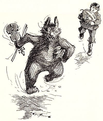 The Bear opened the other eye, and once more reached for his fiddle. This time he got hold of it, but before his other paw touched the bow he was asleep again. Bo waited a moment. Then he suddenly began singing to the other part of the tune:[21]—