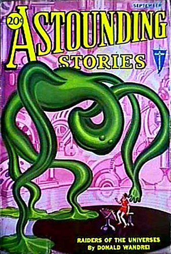 All this his astounded eyes took in at one confused glance. The thing that gave him unreasoning terror was the hundred-foot-high metal monster before him. It defied description. It was unlike any color known on Earth, a blinding color sinister with power and evil. Its shape was equally ambiguous—it rippled like quicksilver, now compact, now spread out in a thousand limbs. But what appalled Phobar was its definite possession of rational life. More, its very thoughts were transmitted to him as clearly as though written in his own English: