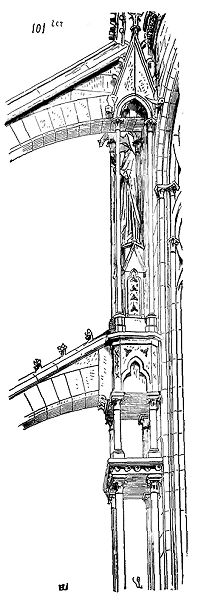 Les constructions romaines, par suite de la stabilité absolue de leurs points d'appui et la concrétion parfaite de toutes les parties supérieures (résultat obtenu, comme nous l'avons déjà dit, au moyen de ressources immenses), présentaient des masses immobiles, passives, comme le pourraient être des monuments taillés dans un seul bloc de tuf. Les constructeurs romans, ne pouvant disposer de moyens aussi puissants, reconnurent bientôt que leurs bâtisses n'offraient pas un ensemble concret, lié, une agglomération parfaitement stable; que les piliers, formés de placages de pierre enfermant un blocage composé souvent de médiocre mortier, que les murs, déliaisonnés dans toute leur hauteur, subissaient des effets, des tassements inégaux qui causaient des déchirures dans les constructions et, par suite, des accidents graves. Il fallut donc chercher les moyens propres à rendre ces effets nuls. Les constructeurs romans, dès le XIe siècle, voulurent, par des motifs développés ailleurs (voy. ARCHITECTURE), voûter la plupart de leurs grands édifices; ils avaient hérité des voûtes romaines, mais ils étaient hors d'état de les maintenir par les moyens puissants que les Romains avaient pu adopter. Il fallut donc encore que leur intelligence suppléât à ce défaut de puissance. La voûte romaine ne se peut maintenir qu'à la condition d'avoir des points d'appui absolument stables, car cette voûte, soit en berceau, soit d'arête, soit en demi-sphère, forme une croûte homogène sans élasticité, qui se brise en morceaux, s'il survient quelques gerçures dans sa concavité. Voulant faire des voûtes à l'instar des Romains, et ne pouvant leur donner des points d'appui absolument stables, il fallait que les constructeurs romans trouvassent une méthode nouvelle pour les maintenir, en rapport avec l'instabilité des points d'appui destinés à les porter et les contre-butter. La tâche n'était pas aisée à remplir: aussi les expériences, les tâtonnements, les essais furent-ils nombreux; mais cependant, dès l'origine de ces essais, on voit naître un système de construction neuf, et ce système est basé sur le principe d'élasticité, remplaçant le principe de stabilité absolue adopté par les Romains. La voûte romaine, sauf de rares exceptions, est faite en blocages; si elle est renforcée par des arcs en brique, ces arcs sont noyés dans l'épaisseur même du blocage et font corps avec lui. Les constructeurs romans, au lieu de maçonner la voûte en blocage, la construisirent en moellons bruts noyés dans le mortier, mais posés comme des claveaux, ou en moellons taillés et formant une maçonnerie de petit appareil; déjà ces voûtes, si un mouvement venait à se déclarer dans les points d'appui, présentaient une certaine élasticité, par suite de la réunion des claveaux, ne se brisaient pas comme une croûte homogène, et suivaient le mouvement des piles. Mais cette première modification ne rassurait pas entièrement les constructeurs romans; ils établirent sous ces voûtes, de distance en distance, au droit des points d'appui les plus résistants, des arcs doubleaux en pierres appareillées, cintrés sous l'extrados des voûtes. Ces arcs doubleaux, sortes de cintres permanents élastiques, comme tout arc composé d'une certaine quantité de claveaux, suivaient les mouvements des piles, se prêtaient à leur tassement, à leur écartement, et maintenaient ainsi, comme l'aurait fait un cintre en bois, les concavités en maçonneries bâties au-dessus d'eux.