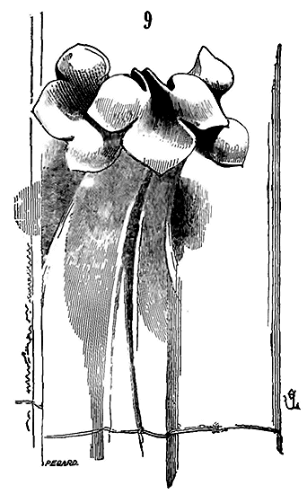 Soit (8 bis) la coupe longitudinale d'une voûte d'arête romane sur plan barlong, la ligne AB est une suite de courbes, ou tout au moins de lignes brisées réunissant les points CD, sommets des arcs transversaux aux points de rencontre E des demi-cercles diagonaux. Il fallait nécessairement conserver sous les points C D des arcs saillants, des arcs doubleaux, qui n'étaient, comme nous l'avons dit plus haut, que des cintres permanents.