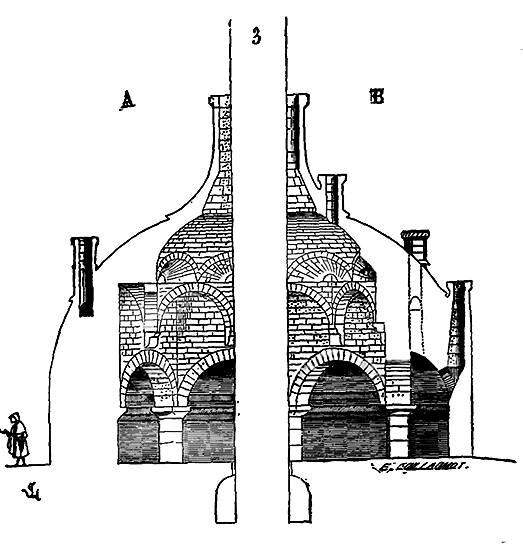 Pendant la durée de l'Empire romain, soit à Rome, soit à Byzance, il est facile de reconnaître que les voûtes avaient été la préoccupation dominante des constructeurs. De la voûte en berceau ils étaient promptement arrivés à la voûte d'arête, et de la coupole portée sur un mur circulaire ou tambour, ils étaient arrivés, dans la construction de l'église de Sainte-Sophie, à la voûte hémisphérique portée sur pendentifs: pas immense, qui établit une ligne de démarcation tranchée entre les constructions romaines de l'antiquité et celles du moyen âge. Ni Rome, ni l'Italie, ni les Gaules ne laissent voir un seul édifice romain dans lequel la voûte hémisphérique soit portée sur pendentifs. L'église de Sainte-Sophie est la première qui nous fournisse un exemple de ce genre de construction, et, comme chacun sait, c'est la plus vaste coupole qui existe. Comment les architectes romains établis à Byzance étaient-ils arrivés à concevoir et exécuter une construction de ce genre? C'est ce que nous ne chercherons pas à démêler. Nous prenons le fait là où, pour la première fois, il se manifeste avec une grandeur et une franchise incontestées. Couvrir une enceinte circulaire par une voûte hémisphérique, c'était une idée fort naturelle et qui fut adoptée dès une haute antiquité; faire pénétrer des cylindres, des voûtes en berceau dans le tambour circulaire, c'était une conséquence immédiate de ce premier pas. Mais élever une coupole hémisphérique sur un plan carré, c'est-à-dire sur quatre piles isolées et posées aux angles d'un carré, ce n'était plus une déduction du premier principe, c'était une innovation, et une innovation des plus hardies.